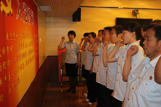 7月1日上午,项城法院举办新任法官重温入党誓词活动,庆祝建党94周年。