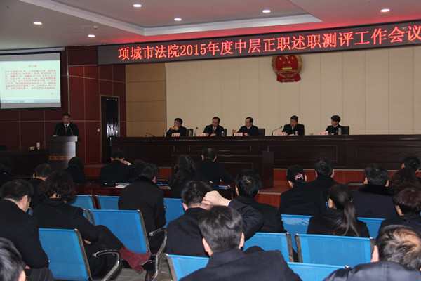 为确保中层干部总结好成绩、查找查实问题,促进交流学习,理清工作思路,提高综合素质,展现中层干部才能,树立中层干部现象,项城法院改变以往书面述职方式,于2016年1月22日下午,召开部门正职述职工作会议。院党组书记、院长赵振勇及全体党组成员、全院干警参加了会议,会议由副院长位红星主持。