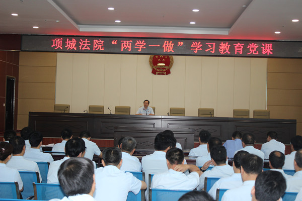 为推进“两学一做”学习教育的深入开展,9月18日下午,项城法院党组书记、院长赵振勇结合全院党员干部的思想状况、审判工作实际,就“两学一做”学习教育为全体党员干警上了一堂生动的党课。