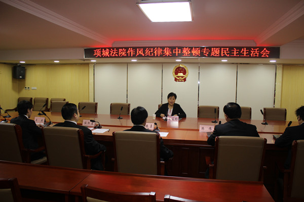 10月19日上午,项城法院召开作风纪律集中整顿专题民主生活会,市政协主席王玉玲到会指导并主持会议,市法院全体班子成员参加了会议。