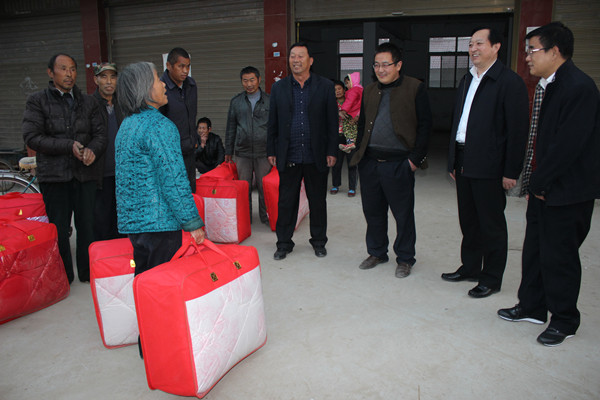 每到一户,赵振勇院长一行向他们嘘寒问暖,详细了解他们的生产生活情况,为他们分别送去过冬的棉被。官会镇李赵庄行政村安庄自然村群众王万峰激动地说:感想党委、政府,感谢法院赵院长。贫困是暂时的,我们一定会在党委、政府和赵院长的帮助指导下,苦干实干,早日脱贫。