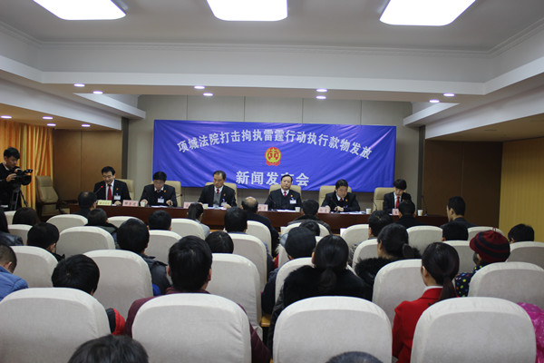 项城法院召开打击拒执雷霆行动暨执行款物发放新闻发布会