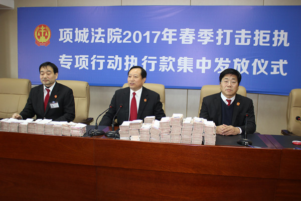 1月24日上午,项城法院召开春季打击拒执专项行动执行款集中发放活动,集中发放执行款65户287多万元。