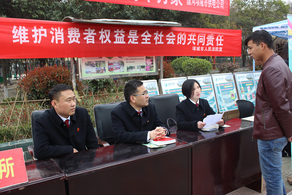 为提高群众的依法维权意识,维护消费者的合法权益。在“3、15国际消费者权益日”之日,项城市人民法院行政审判庭全体干警在项城市人民公园为群众开展消费者权益保护相关法律的宣传活动。