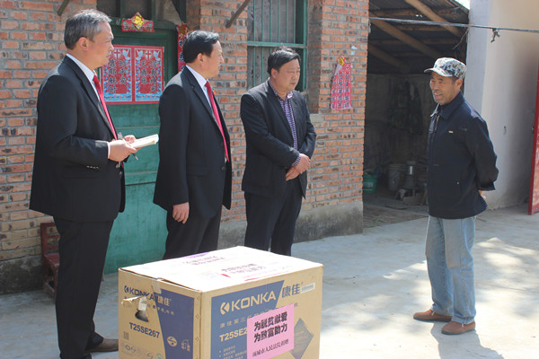 为脱贫献爱,为致富助力。4月14日上午,市法院院长赵振勇、副院长韩伟深入官会镇李赵庄行政村走访慰问帮扶困难户,为每户捐赠康佳牌25英寸彩电一台。