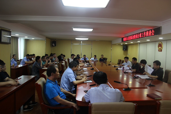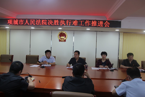 为打赢“基本解决执行难”攻坚战,顺利通过第三方评估,5月26日上午,项城法院召开决胜执行难工作推进会。院党组书记、院长张永波,副院长王燕及执行局全体干警参加会议。会议由院党组副书记解普建主持。