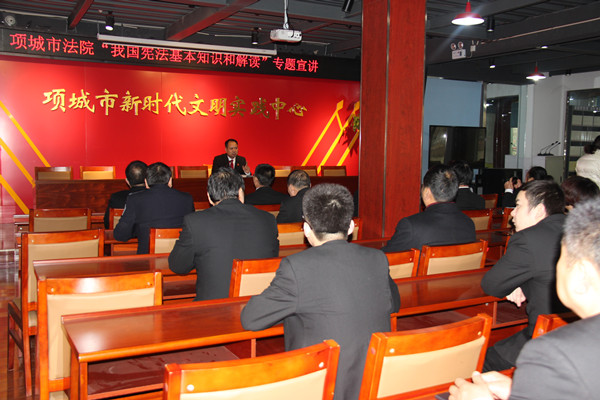 为深入学习宣传《宪法》,12月26日上午,项城法院在项城市新时代文明实践中心举办《宪法》专题讲座,院党组书记、院长张永波亲自大家授课,市直有关部门的同志及市法院中层以上干警参加了专题学习。