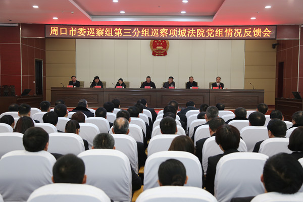 1月24日上午,周口市委第三巡察组巡察项城法院党组情况反馈会在我院二楼会议室召开。周口市委巡察组第三分组组长郭明祥,副组长刘晓燕,成员刘红彬、李红初,项城市委巡察工作领导小组成员、市委组织部副部长张领中,项城市委巡察专员齐占伟出席会议,院党组书记、院长张永波主持会议并作表态发言。