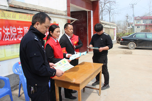 活动中,院党员扶贫志愿者服务队采取设立法律咨询台,走村串巷向群众发放周口市青少年毒品预防教育读本——《凋若夏花》、《扫黑除恶宣传手册》、《卫生防病知识宣传手册》、《控烟知识宣传手册》宣传资料等形式,积极开展法律及卫生健康知识宣传,引导群众增强法律意识、文明意识、健康意识,以实际行动,积极文明乡村共建工作开展。