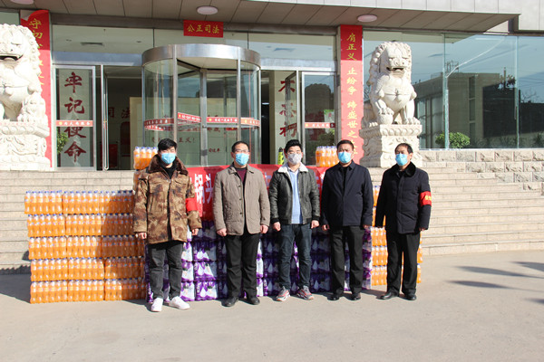 2月17日下午,爱心人士北京二锅头出口小方瓶项城樊辉经销部负责人樊辉,将价值1万余元的饮料、矿泉水送到法院,以表达他的感激之情。