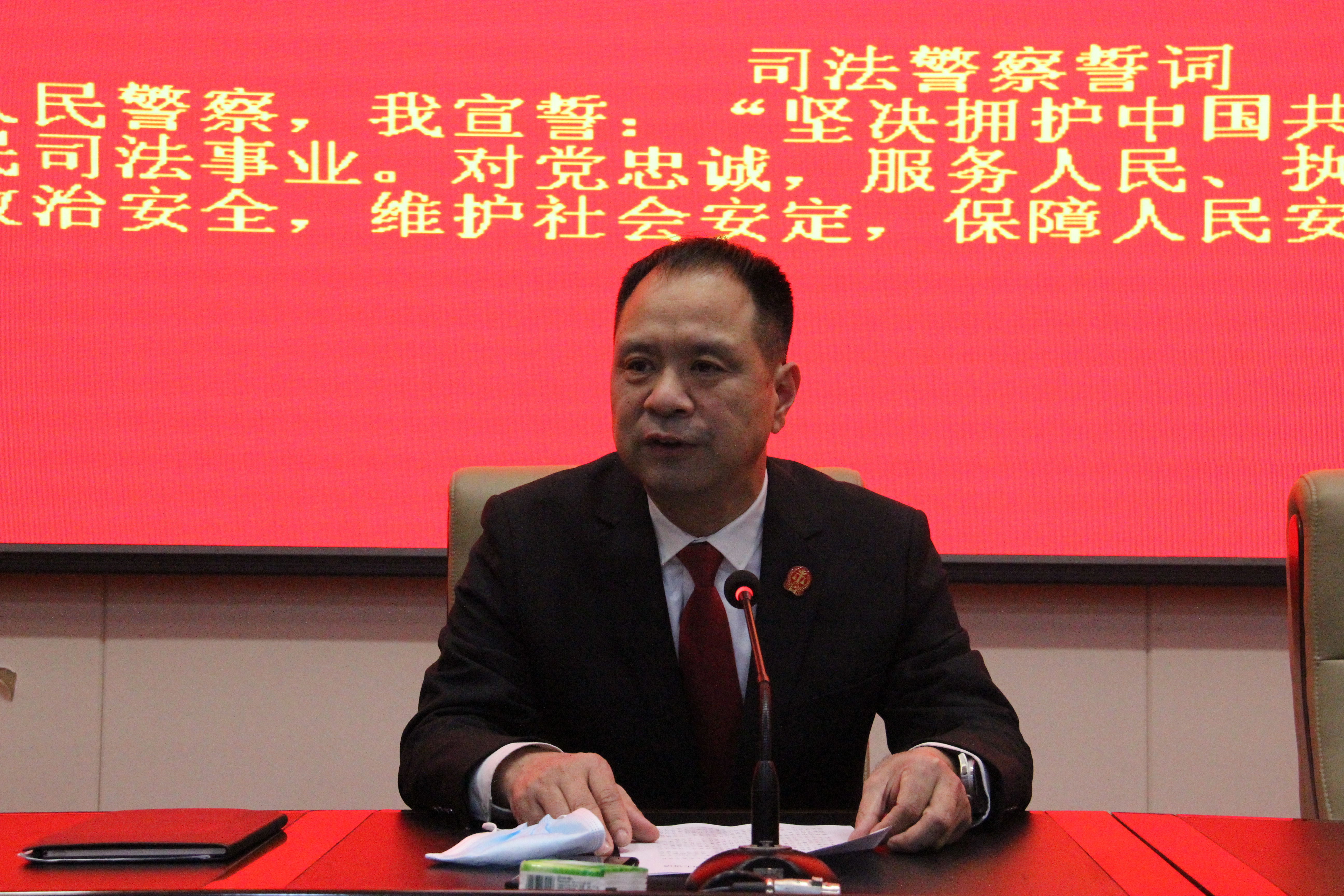 活动中,司法警察统一着警服、戴警帽。张永波院长首先向全体司法警察送上了节日的问候,并充分肯定了司法警务工作所取得成绩,就下一步工作工作,张院长强调:高举习近平新时代中国特色社会主义思想伟大旗帜,认真学习领会习近平法治思想,增强“四个意识”、坚定“四个自信”、做到“两个维护”。一要坚持政治建警,加强党的绝对领导,永葆绝对忠诚、绝对纯洁、绝对可靠的政治本色;二要狠抓队伍建设,提升干警的综合素质,切实转变工作作风,夯实长远发展基础;三要强化教育训练,积极拓宽渠道,紧贴警务实战,千锤百炼砺兵,提升队伍实战能力;四要落实安全责任,牢记初心使命,忠诚履职尽责,确保安全工作万无一失,为打造我院高水平司法、高质量发展提供更加坚强的保障。