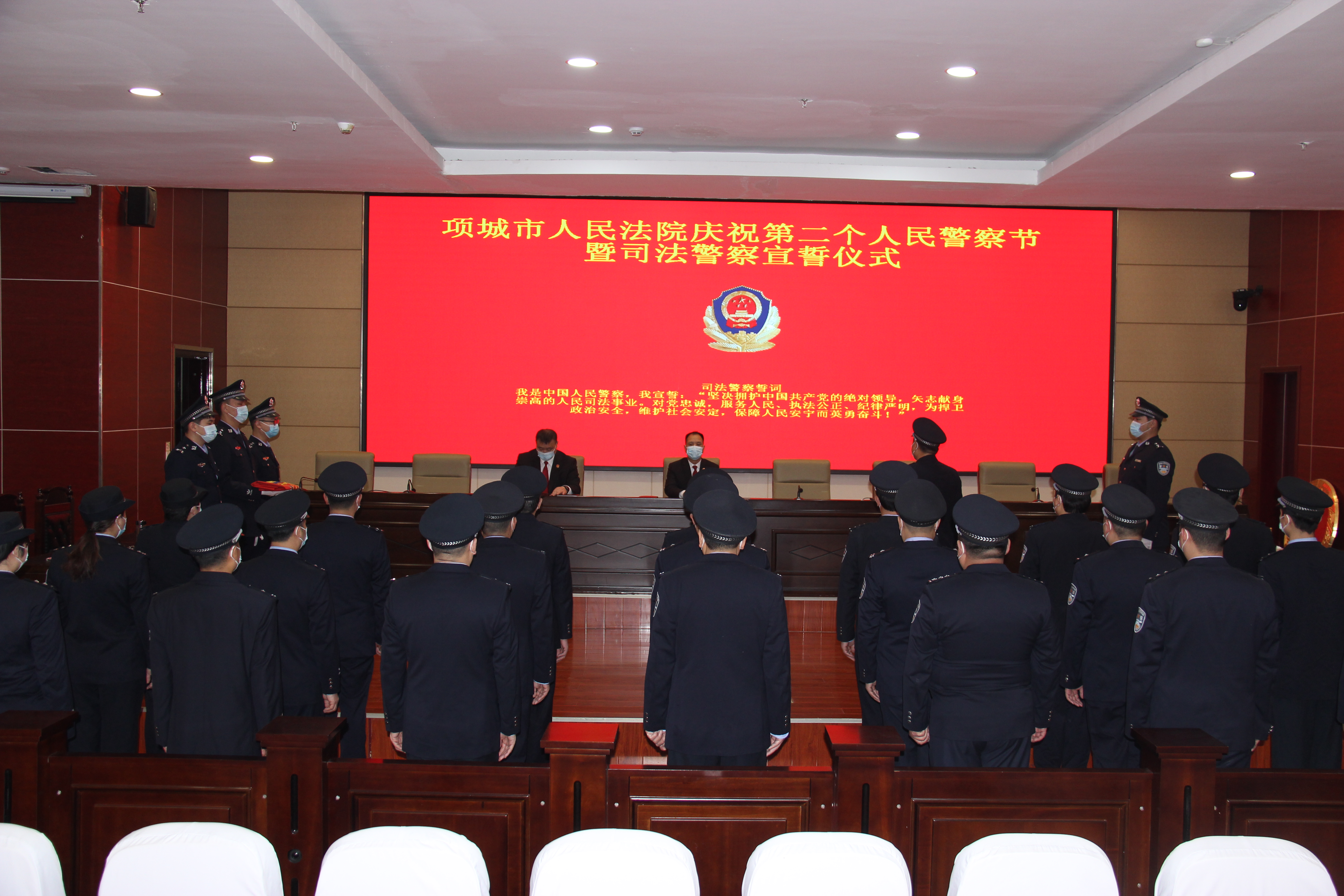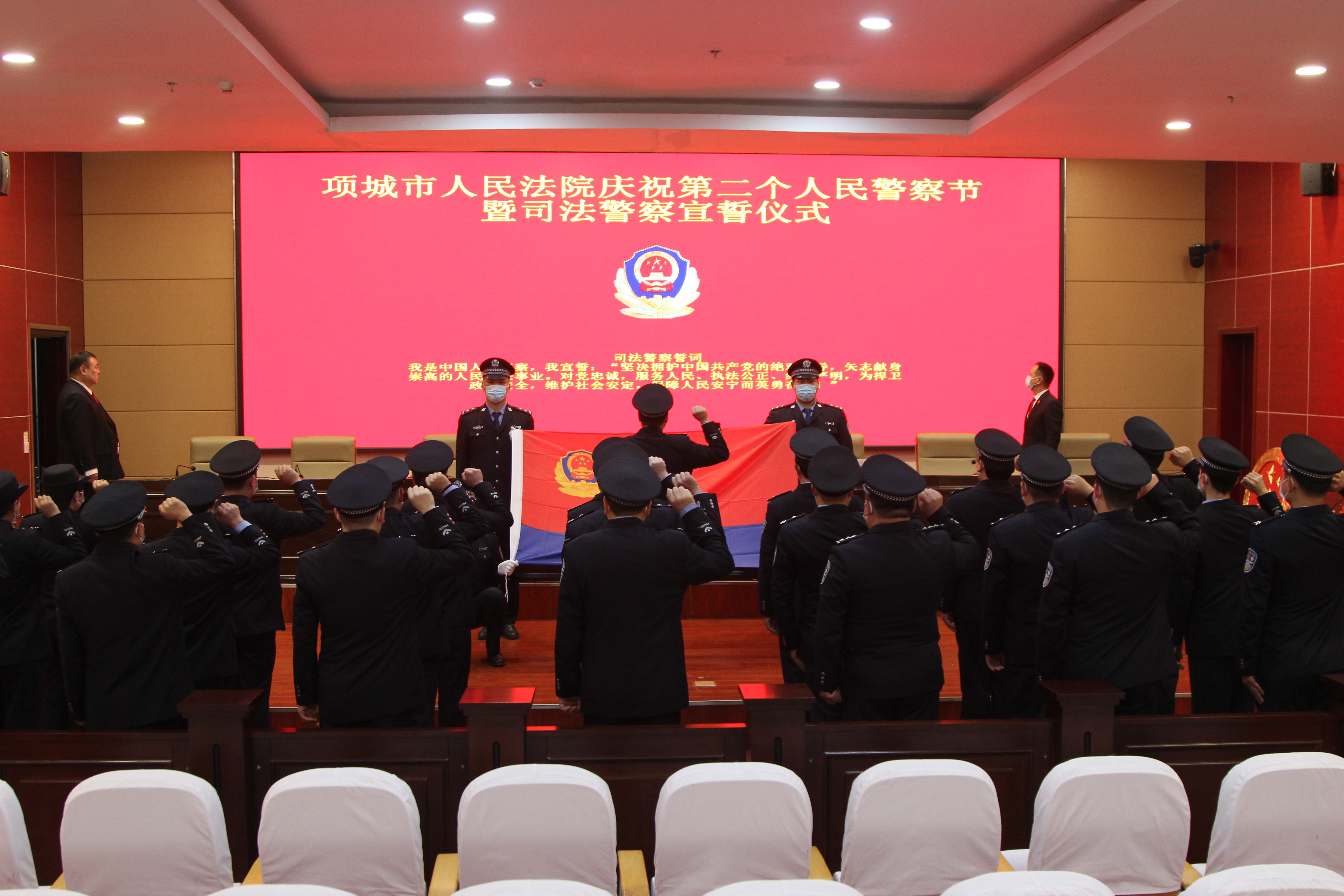 为庆祝第二个中国人民警察节,进一步增强全体司法警察的使命感和责任感,1月10日上午,项城法院开展了庆祝第二个人民警察节宣誓活动。项城法院党组书记、院长张永波,院党组成员、副院长洪斌,全体司法警察、新入警司法警务人员参加了庆祝活动。活动由洪斌副院长主持。