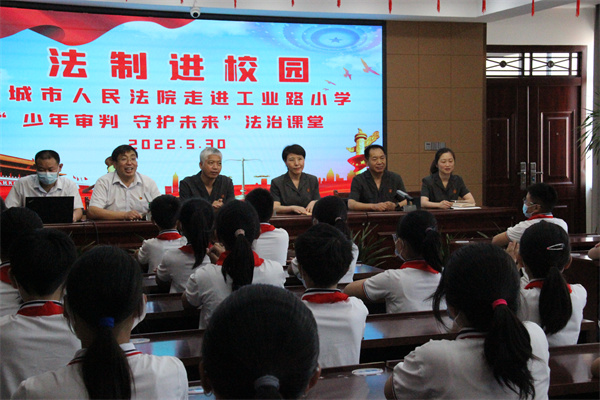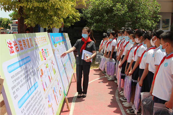 为做好未成年人权益保护普法宣传工作,防范化解未成年人突出安全风险隐患,呵护未成年人健康成长,5月30日上午,在“六一”国际儿童节来临之际,项城法院党组成员、副院长王燕带领刑事审判庭庭长龚光明、少年审判团队负责人刘鑫等一行10人走进项城市工业路小学,为同学们送上法治“大礼包”。