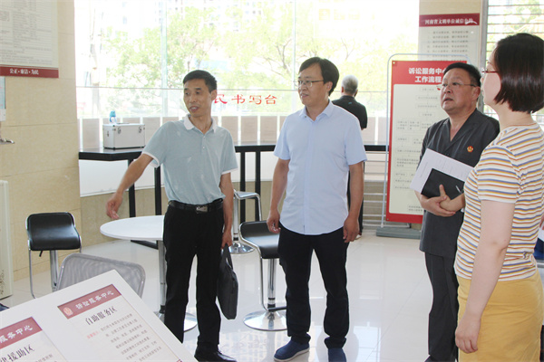6月24日上午,周口中院立案庭庭长安西超等一行2人到项城法院调研一站式建设工作开展情况,项城法院党组书记、院长朱新章,党组成员、副院长洪斌等领导等陪同调研。