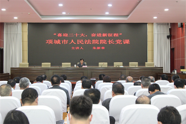 为庆祝建党101周年,喜迎党的二十大胜利召开,6月28日上午,项城市人民法院党组书记、院长朱新章以“弘扬伟大建党精神”为题,为全体党员干警上了一堂生动的党课。