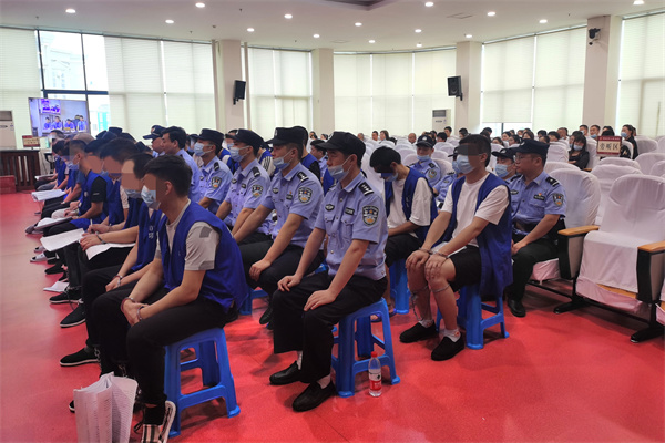 在项城法院审判庭内,刑事审判庭对况某某等20名被告人开设赌场、赌博、帮助信息网络犯罪活动一案进行了宣判,让人民群众亲身感受到从严打击电信网络诈骗犯罪的威严。