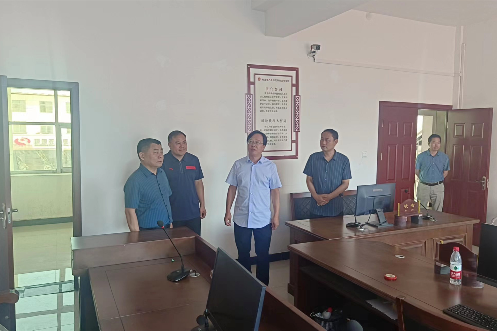 朱新章院长一行先后实地查看了孙店人民法庭立案登记室、多元纠纷调解室、审判法庭、活动室及干警住室等场所,并与驻庭特邀调解员进行了亲切交谈,详细了解诉前调解工作开展情况及存在困难和问题,认真听取了庭长田艳伟关于法庭工作开展情况的汇报。