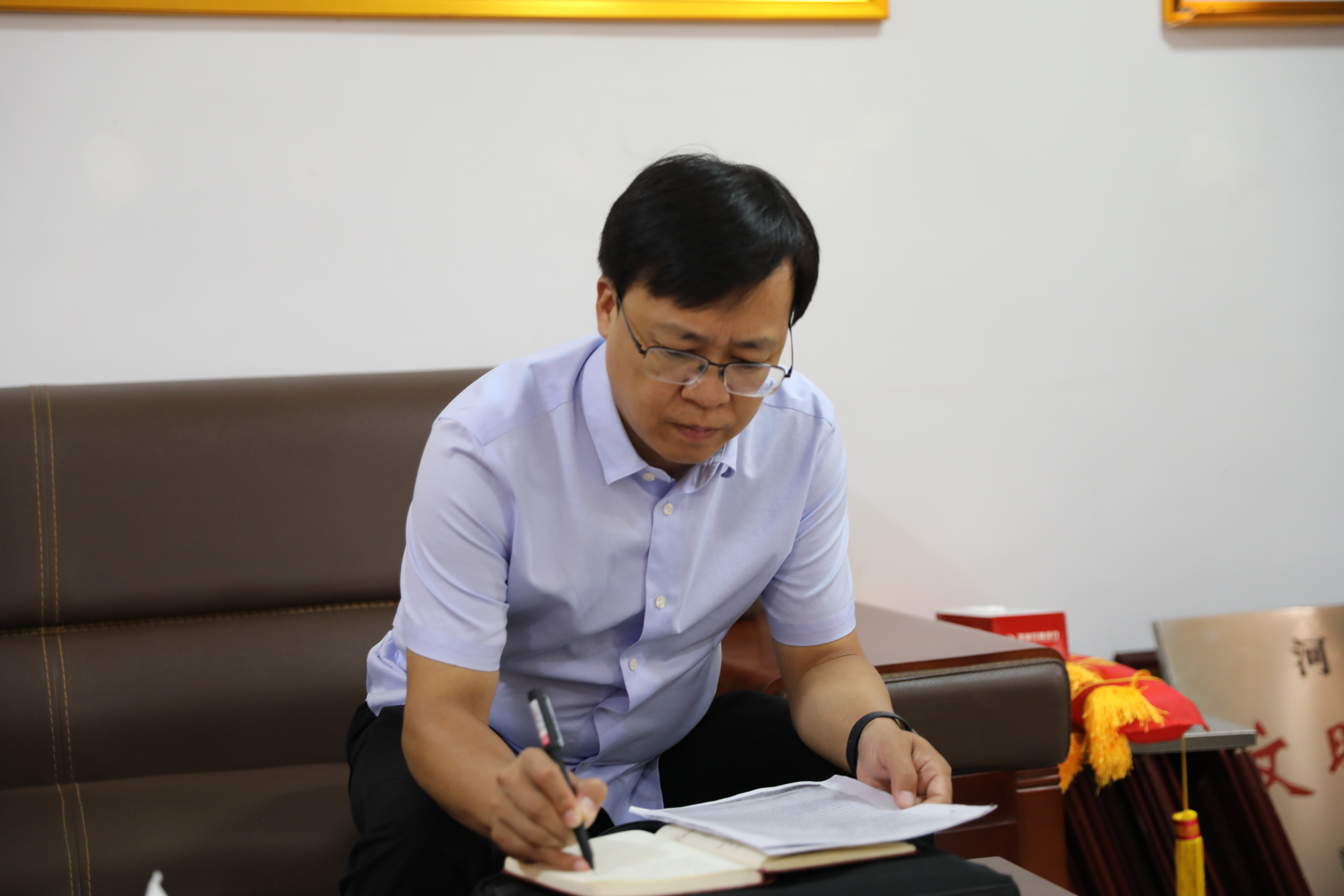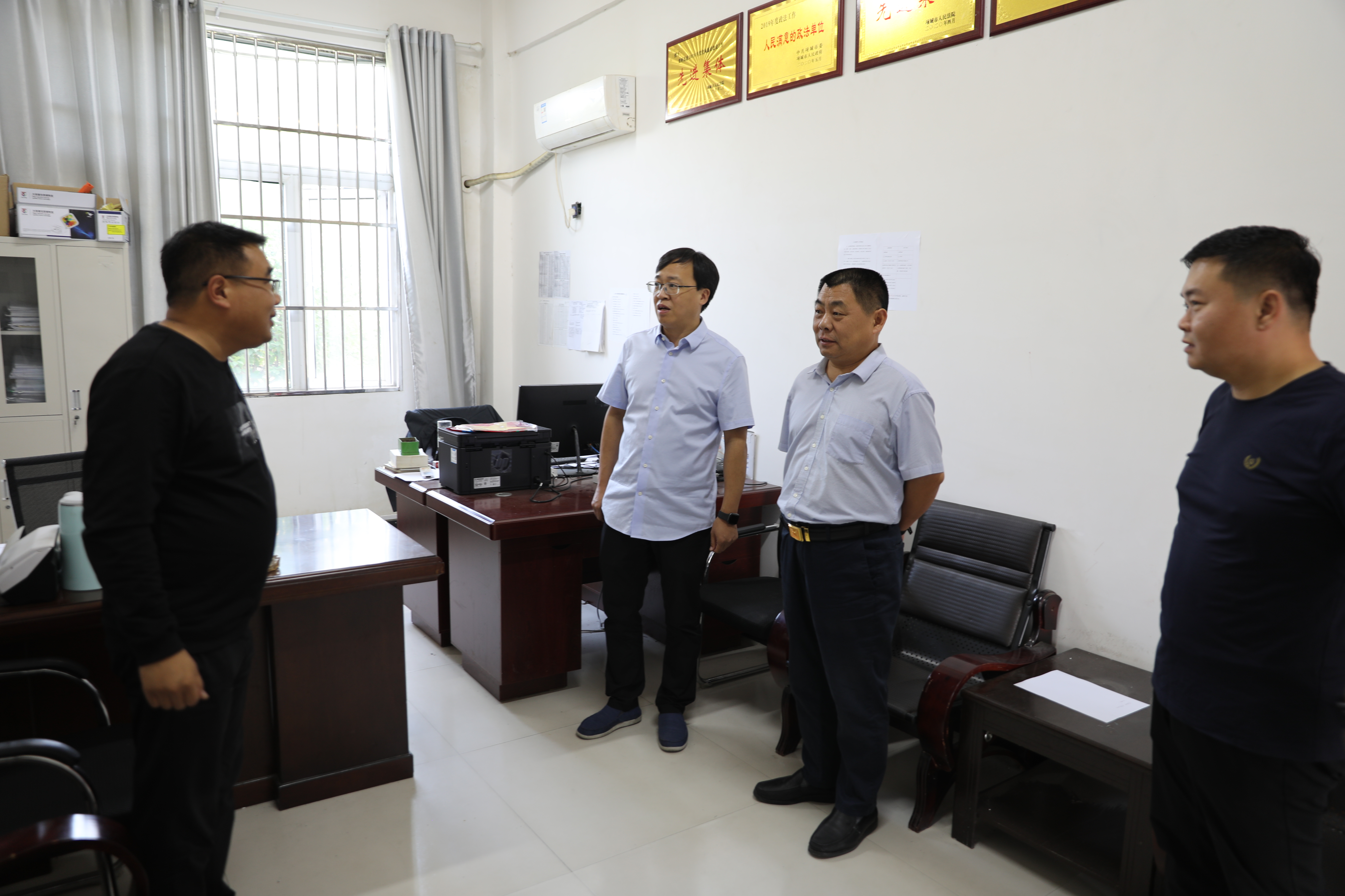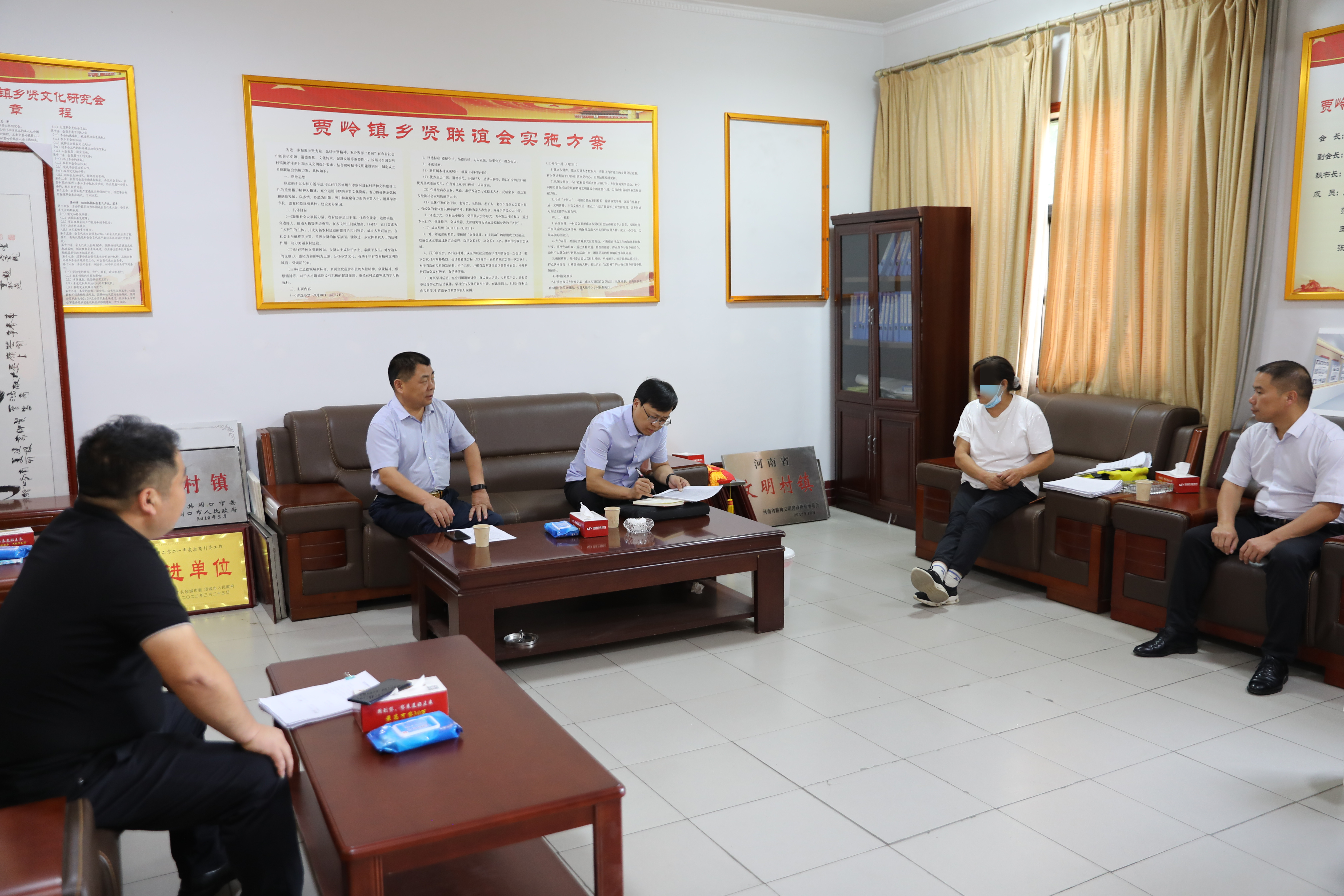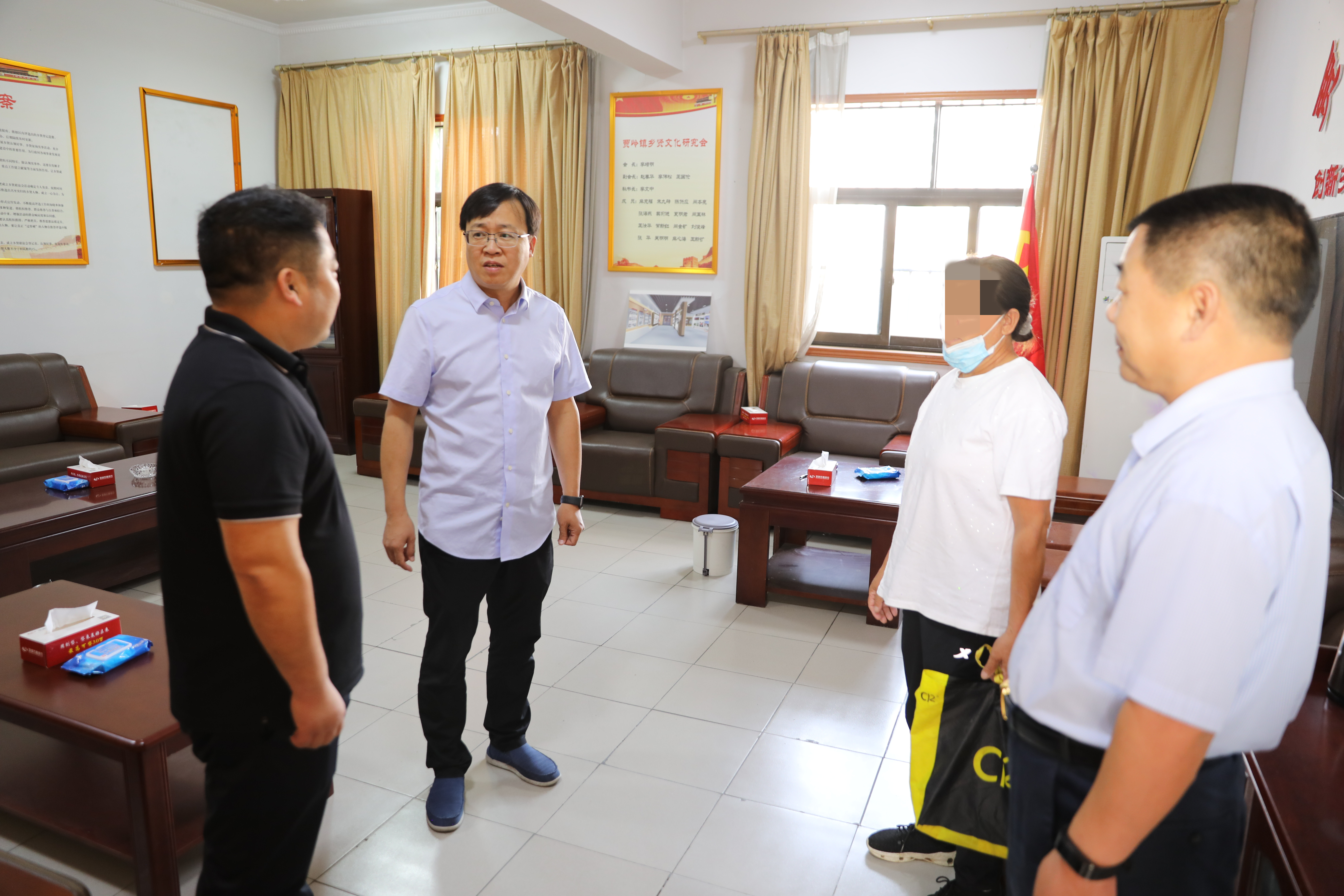 在贾岭镇人民政府,朱新章院长和朱仲文副院长认真听取了贾岭镇党委书记刘风雷关于社会矛盾风险隐患排查工作开展情况的汇报,并与贾岭镇党委书记刘风雷一起接待了信访人麻某某。