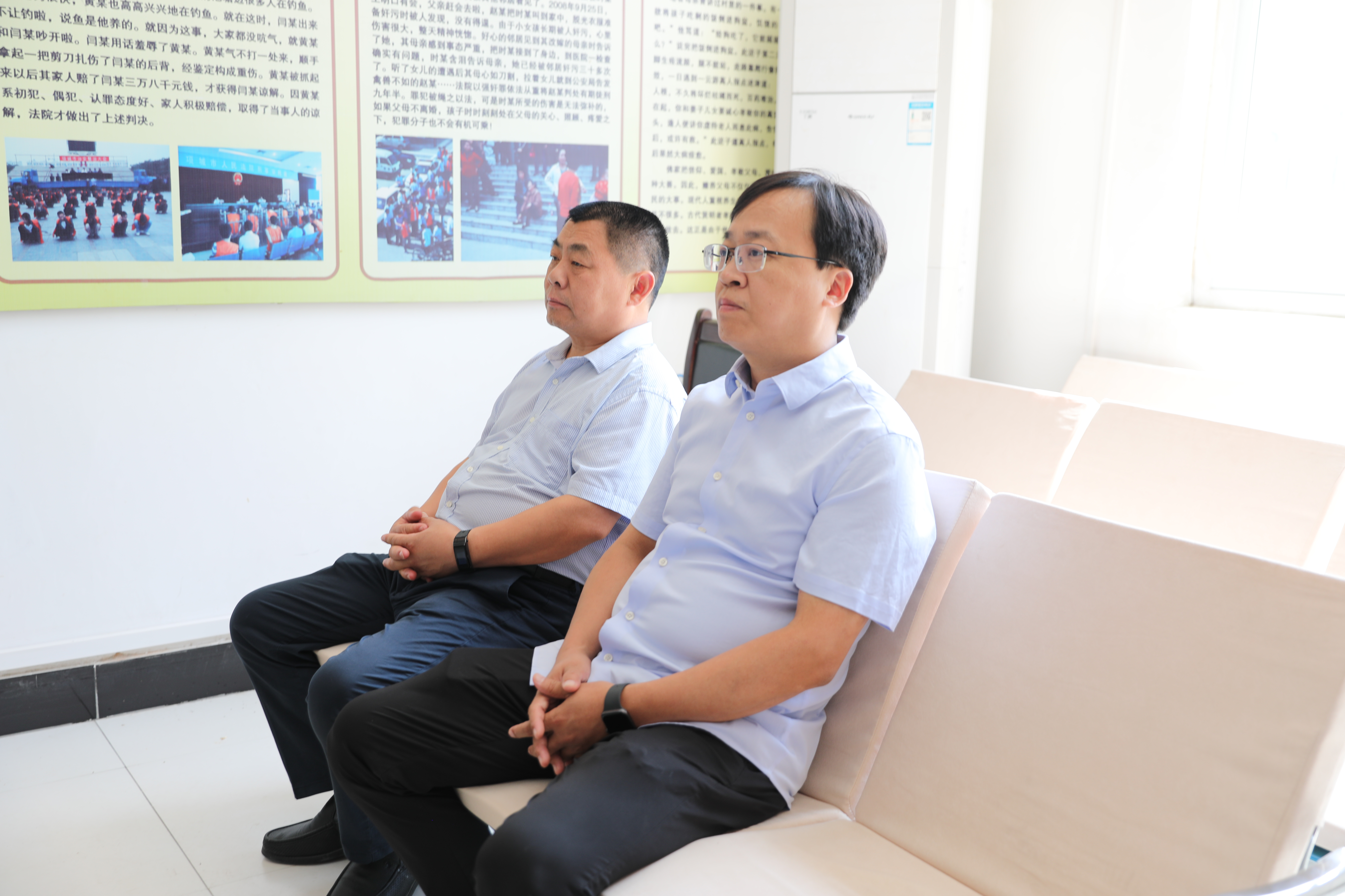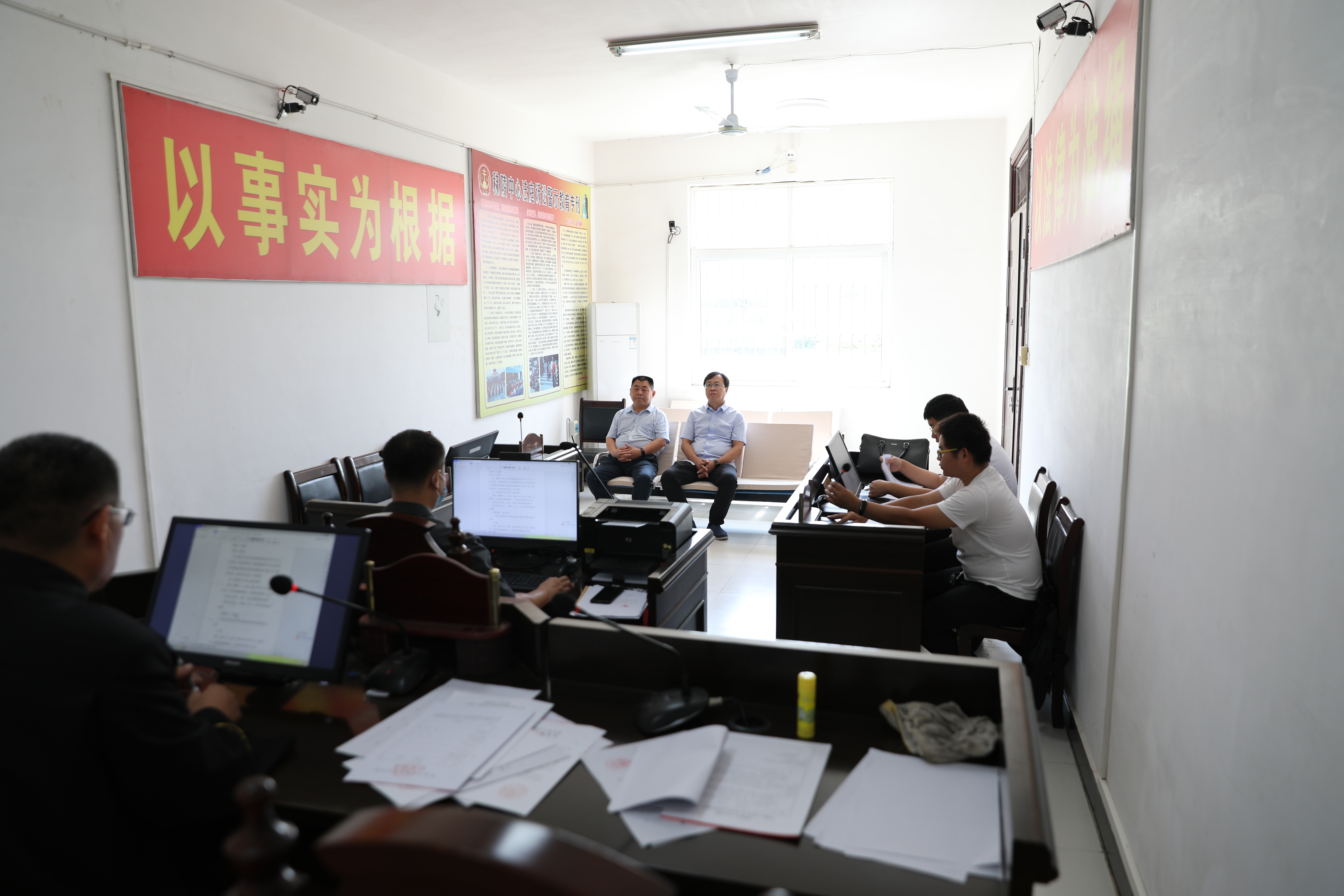 随后,朱新章院长一行先后来到贾岭法庭和秣陵法庭就持续开展社会矛盾风险隐患排查化解工作进行检查,并与驻庭特邀调解员进行了亲切沟通交流,还旁听了秣陵法庭一起离婚纠纷案件的审理。