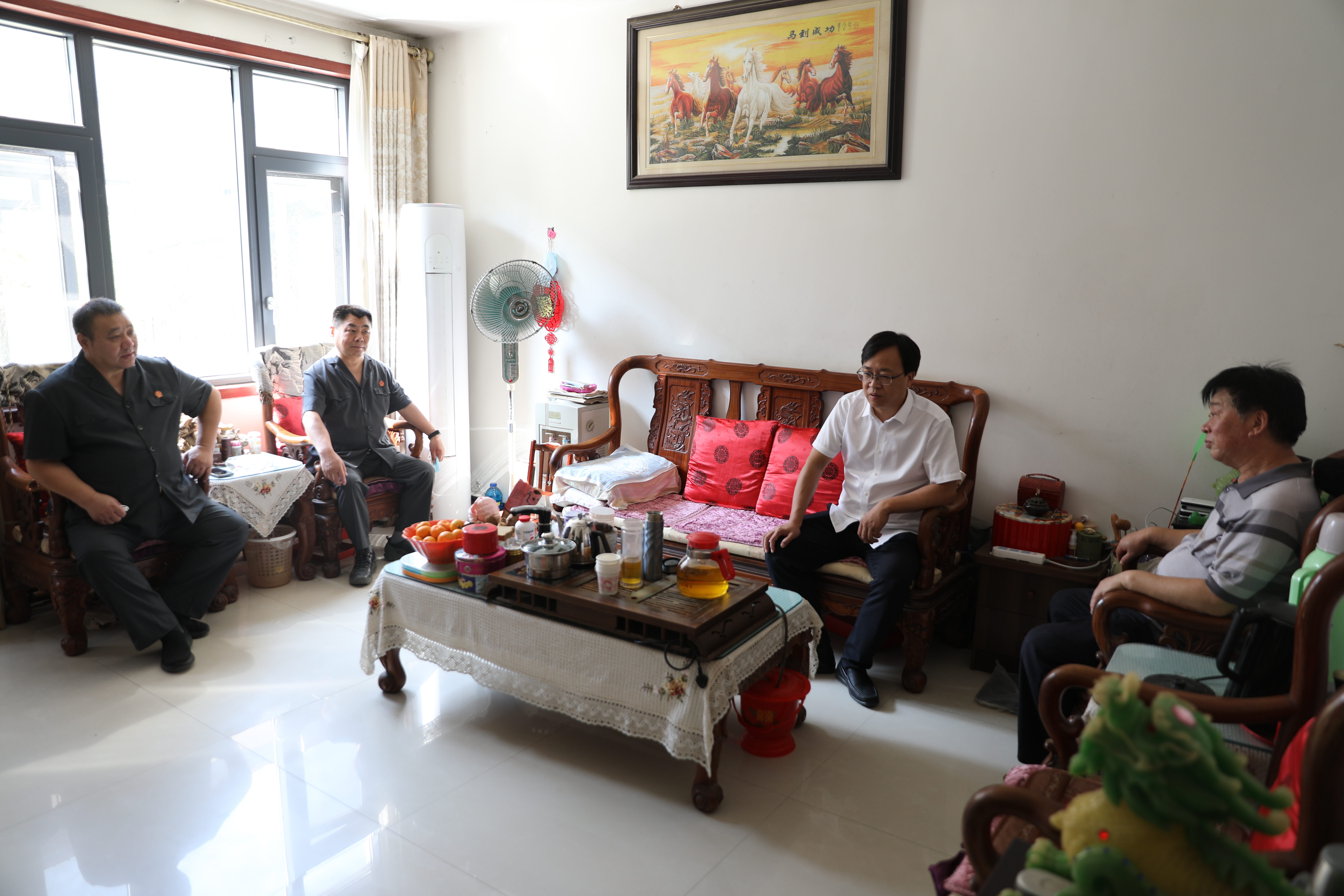 在老干部家中,朱新章院长与老干部促膝长谈,详细了解老干部生活情况及身体健康状况,向其介绍法院工作开展情况,并对他们为法院建设与发展所付出的辛勤劳动和贡献表示衷心的感谢,希望他们继续关心和支持法院工作,为法院建设建言献策。