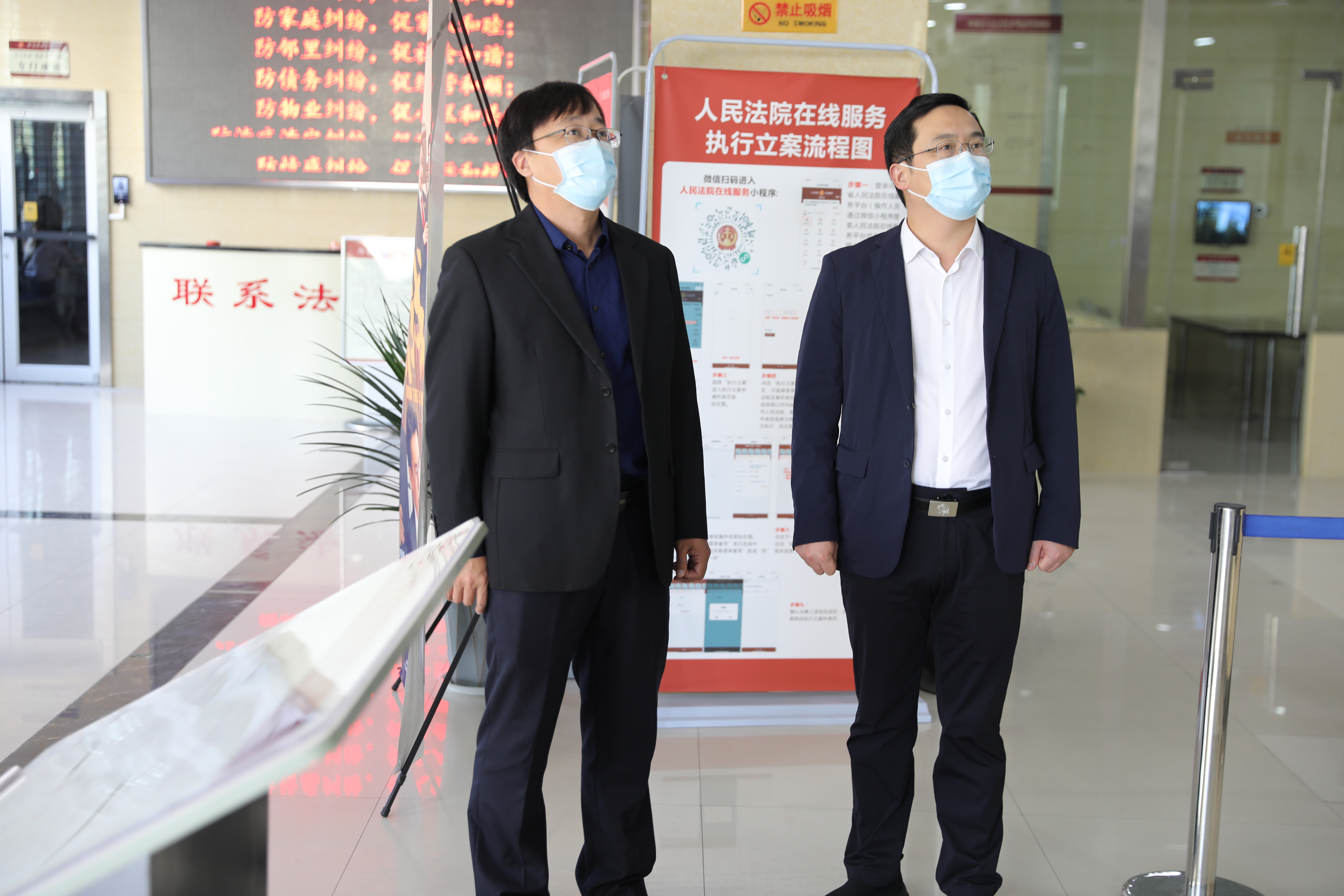 10月20日上午,项城市委常委、政法委书记张建威到项城法院检查指导安保维稳工作,项城法院党组书记、院长朱新章陪同。