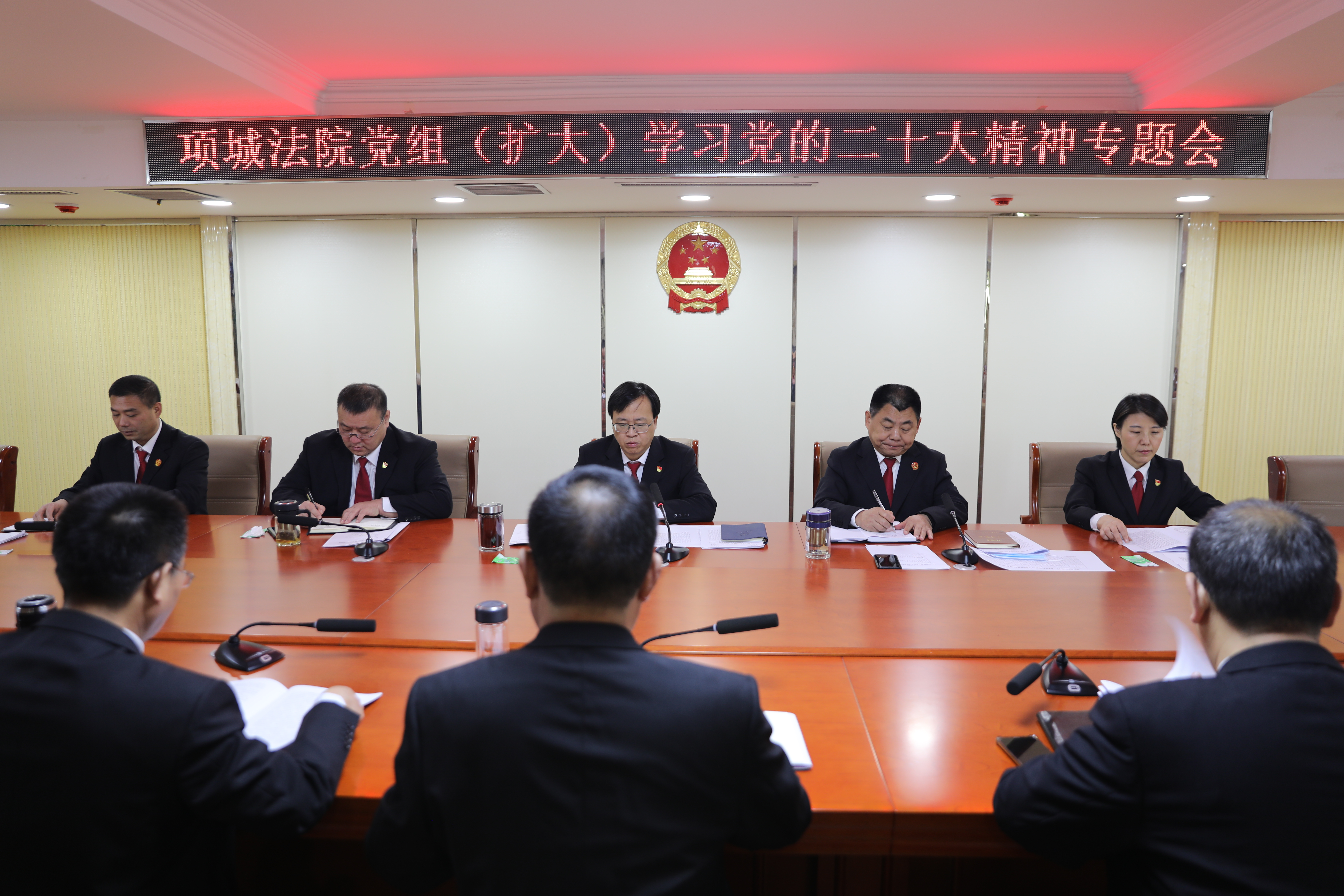 最后,朱新章院长就学习好党的二十大精神对大家提出了具体要求:一是坚持学悟为先,把学习宣传贯彻党的二十大报告精神作为当前和今后一段时期我院的首要政治任务,通过党组会、党组理论学习中心组学习会、党支部会等多种形式,迅速掀起学习宣传党的二十大报告热潮。二是坚持实干为本,把学习党的二十大报告不折不扣贯彻到法院工作全过程、各方面,做到学以致用、知行合一、见之于效。三是坚持谋划为要,要对标二十大任务要求,特别是关于全面依法治国和法治中国建设的战略部署,谋划找准法院工作的切入点、着力点,引领推动项城法院工作高质量发展。