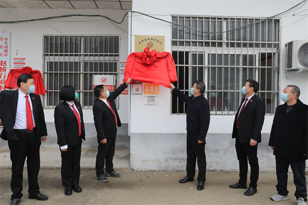 在郑郭镇赵桥、牛营两个行政村村室,项城法院党组副书记、副院长朱仲文,郑郭镇党委书记栾中原共同为“无松村”和项城法院调解平台“三进”工作联络点揭牌。揭牌仪式结束后,分别召开了座谈会。