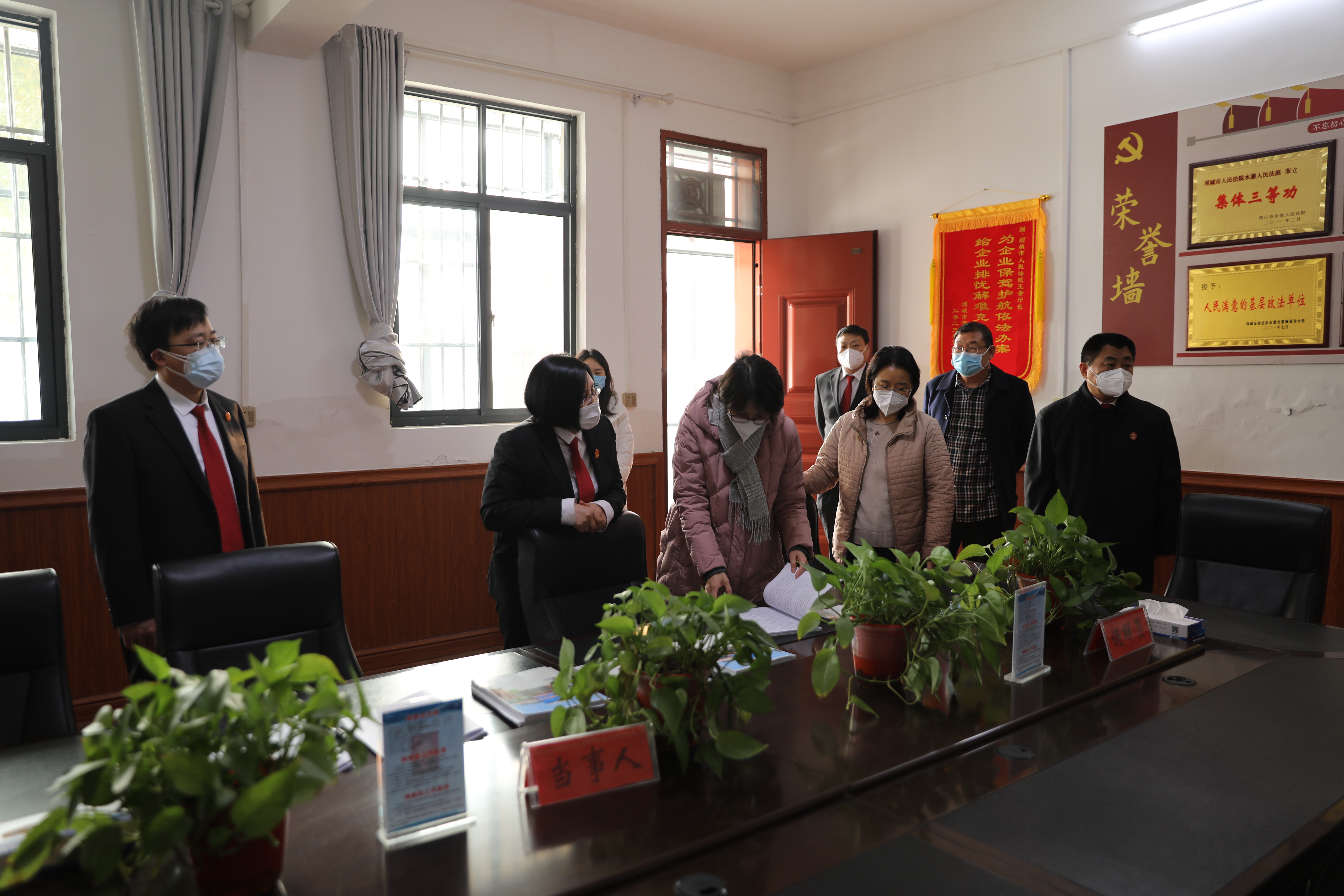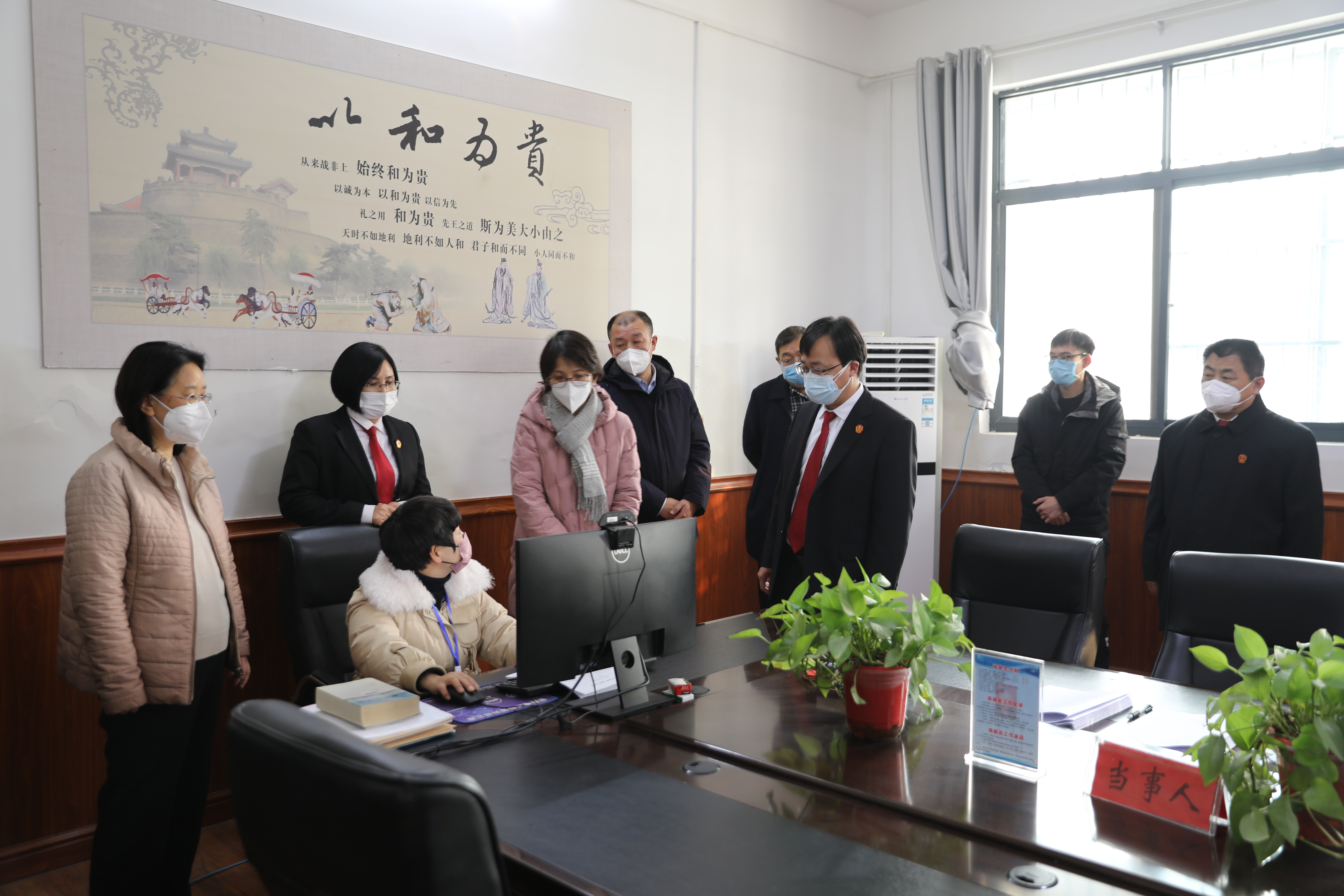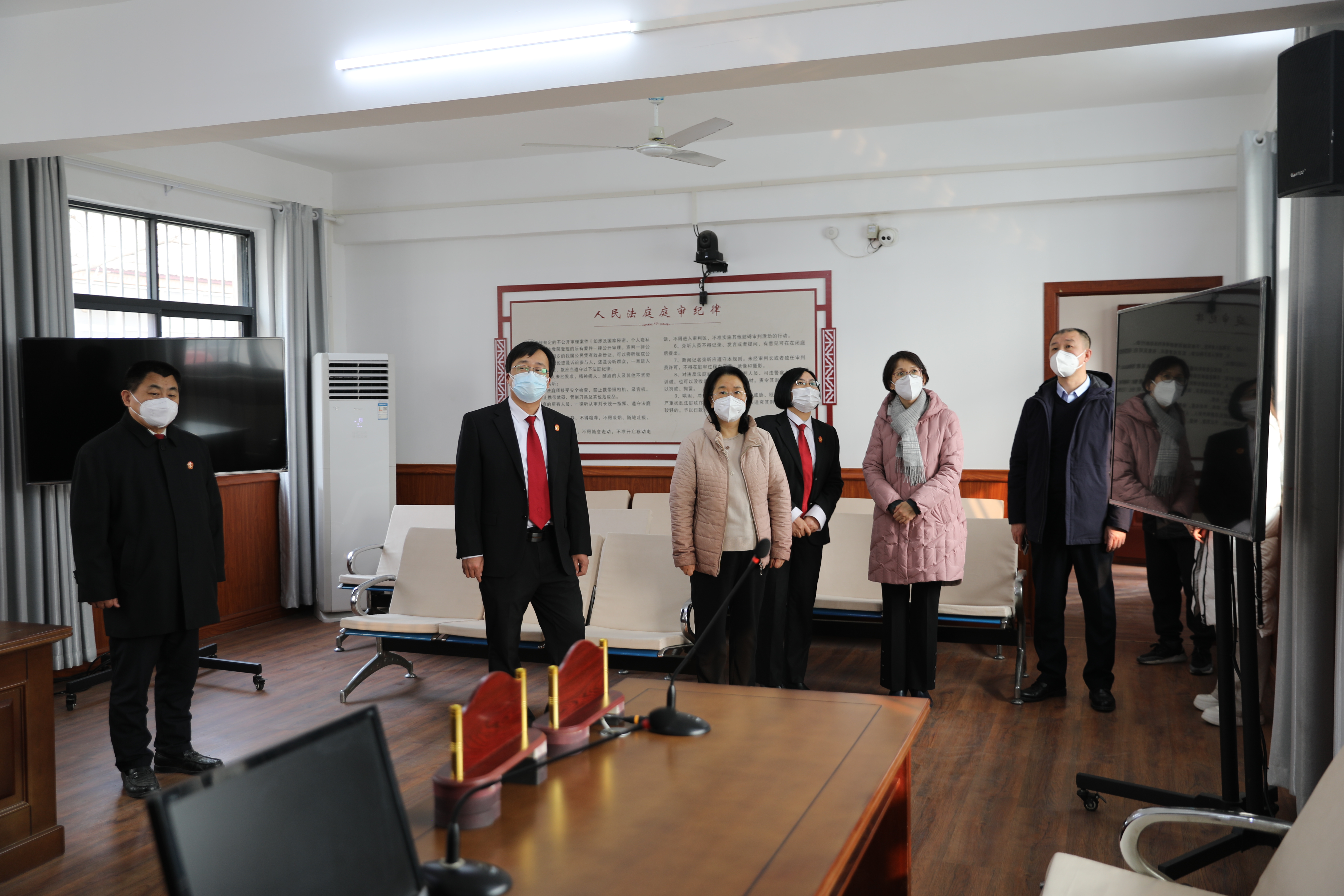 1月5日下午,河南省高级人民法院民一庭庭长高海娟、法官吕强等一行二人到项城法院水寨法庭调研指导“枫桥式人民法庭”创建工作。周口中院党组成员、副院长刘俊荣,民二庭庭长李水安,项城法院党组书记、院长朱新章,党组副书记、副院长朱仲文等领导陪同调研。