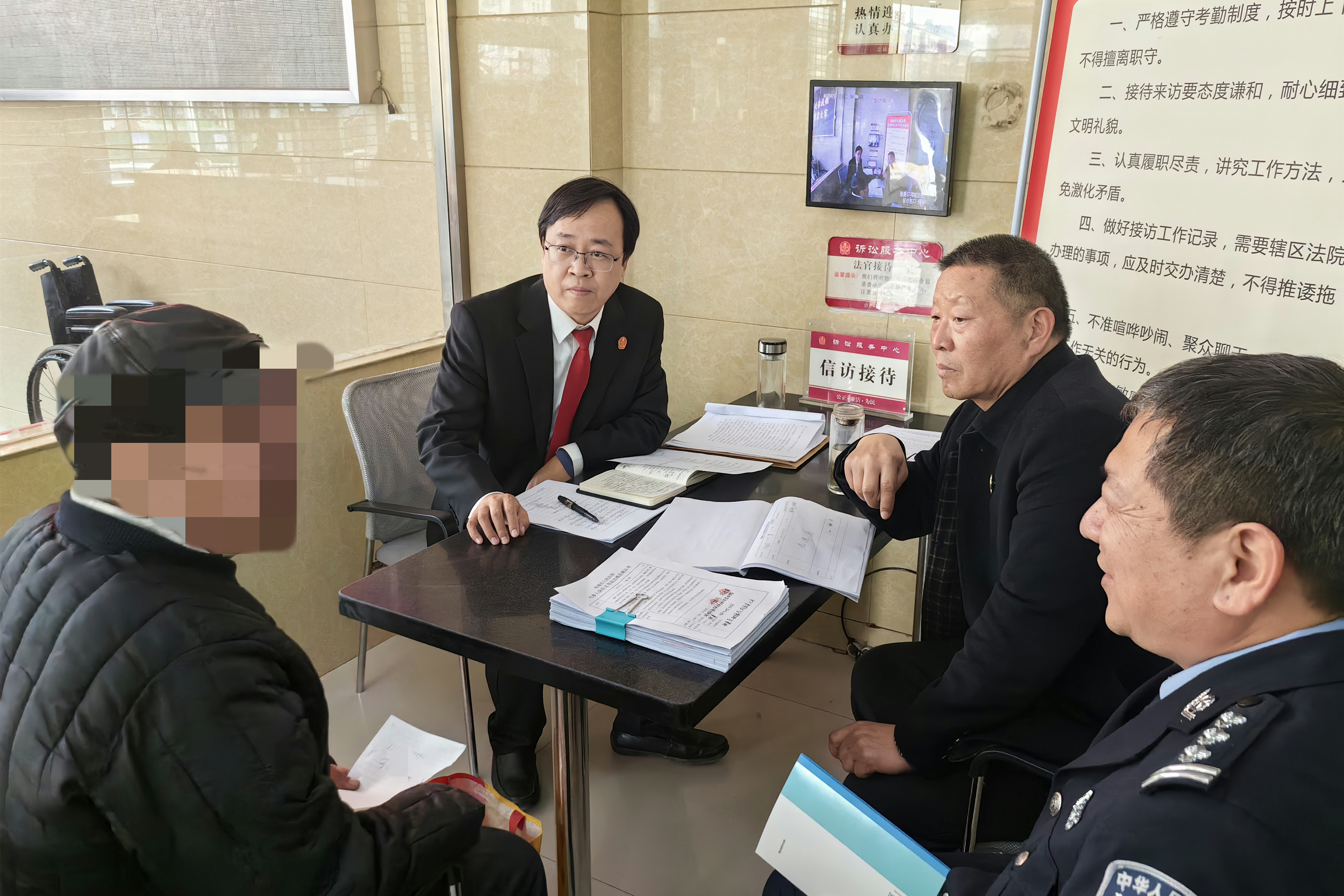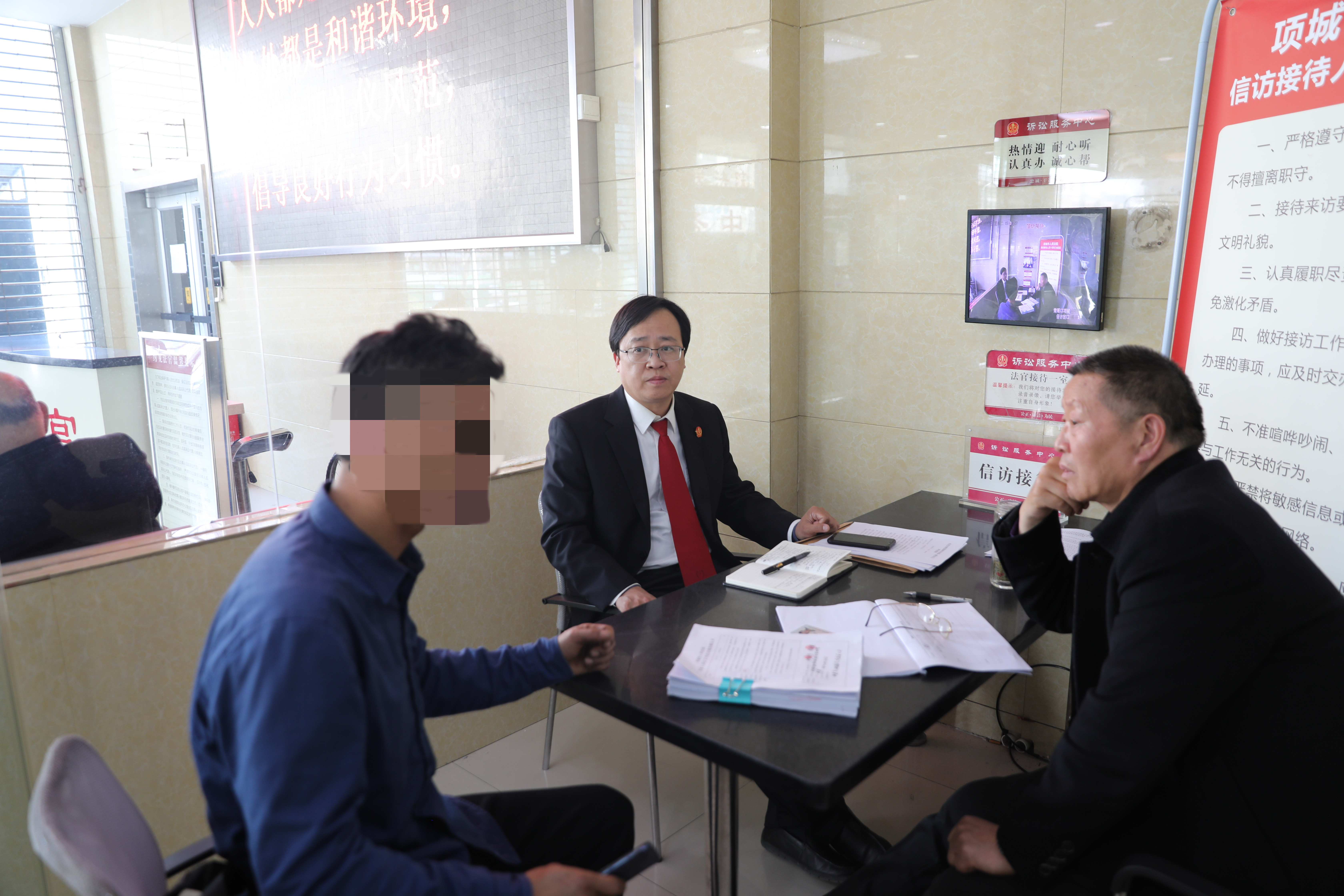 为积极回应群众关切,帮助群众解心结、化矛盾,全力做好全国“两会”期间信访维稳工作,3月7日,项城法院党组书记、院长朱新章在项城法院信访接待室接访。