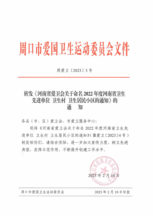 近日,河南省爱卫会下发《关于命名2022年度河南省卫生先进单位 卫生村 卫生居民小区的通知》(豫爱卫[2023]4号),项城法院被重新命名为2022年度“河南省卫生先进单位”。