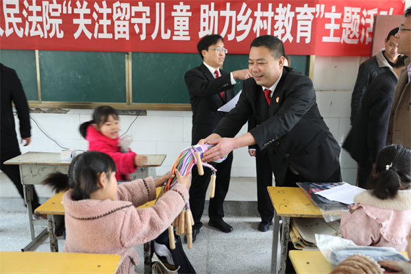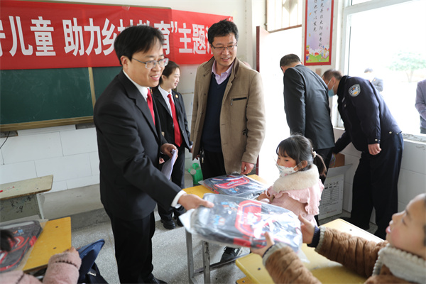 宣讲结束后,朱新章院长一行来到项营行政村小学,为留守儿童送去了书包和体育用品,并鼓励他们努力学习、健康成长,用优异的成绩回报社会的关爱。