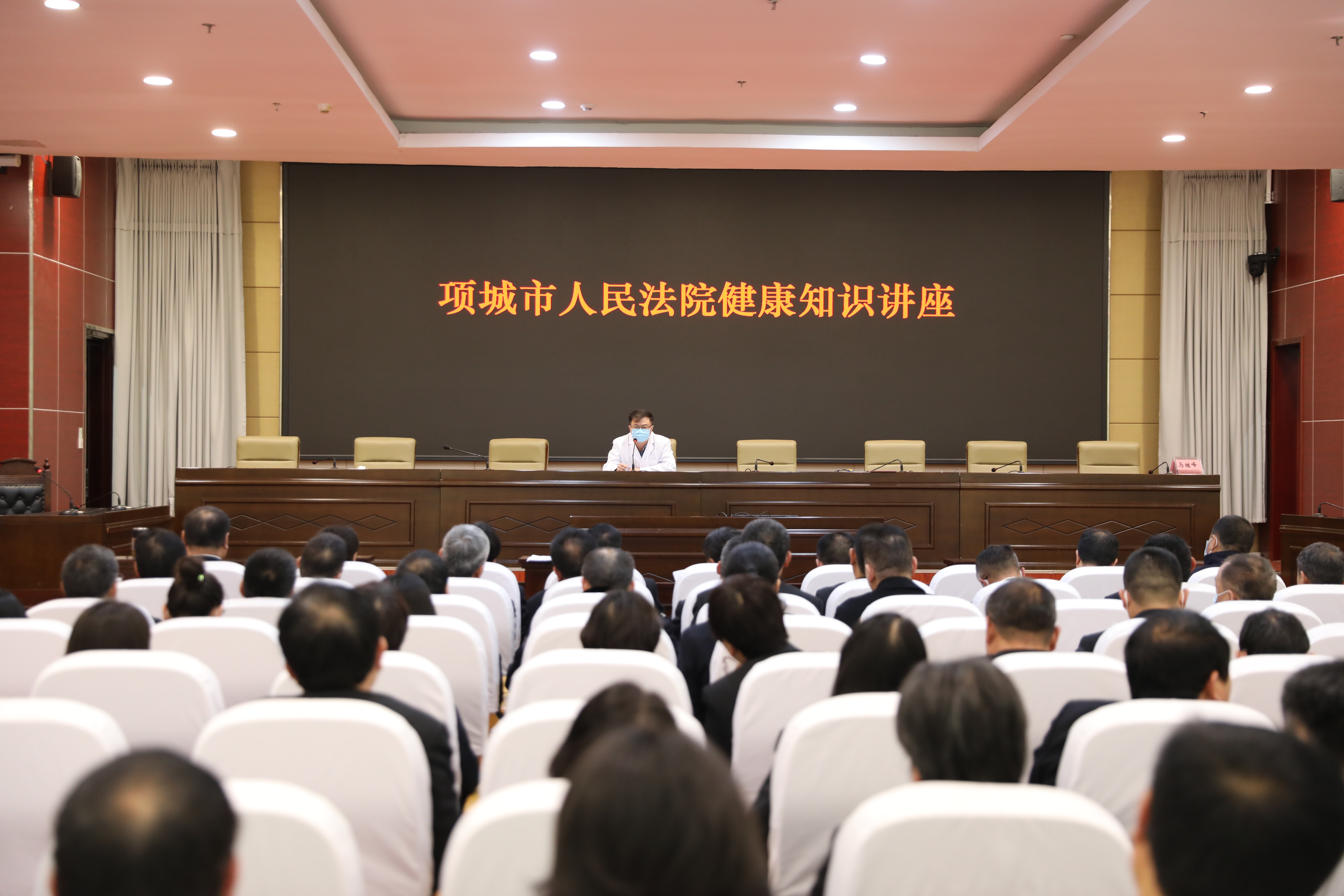 为提高干警健康理念,积极培育健康生活方式,4月3日上午,项城法院司法技术团队负责人、主检法医师麻东升为全院干警带来了一场与生活息息相关的健康知识讲座。院党组书记、院长朱新章,班子成员及全体干警参加讲座。