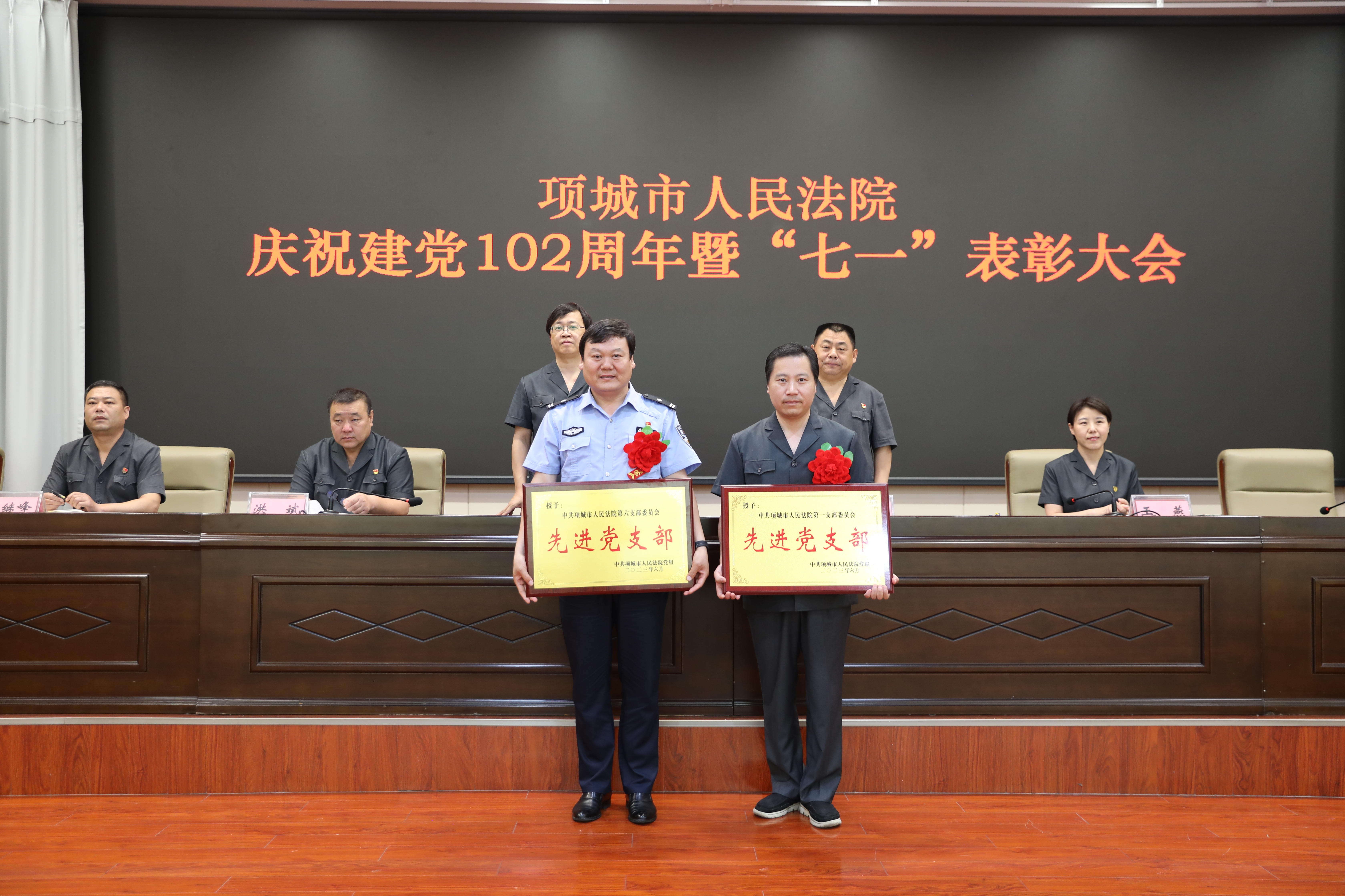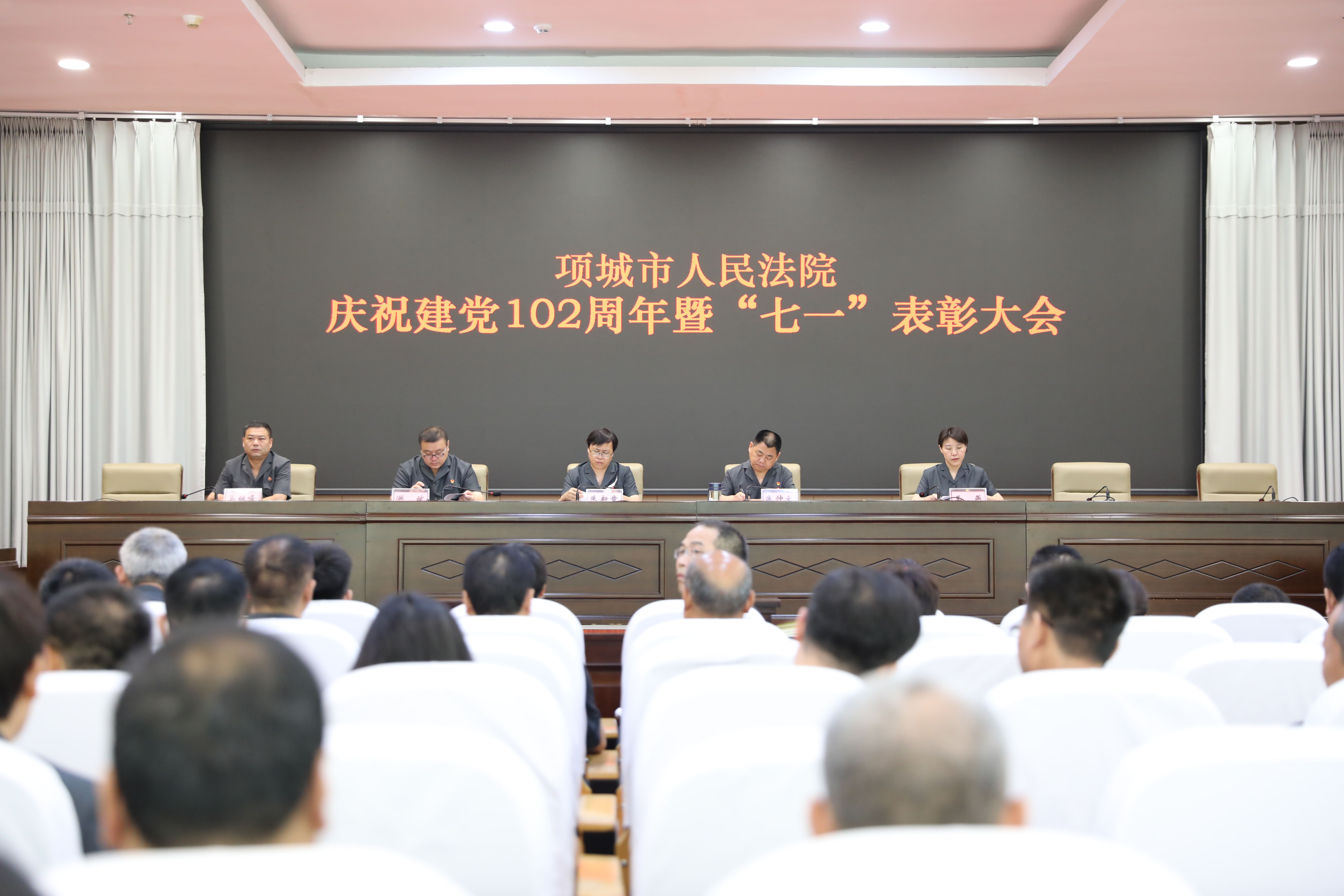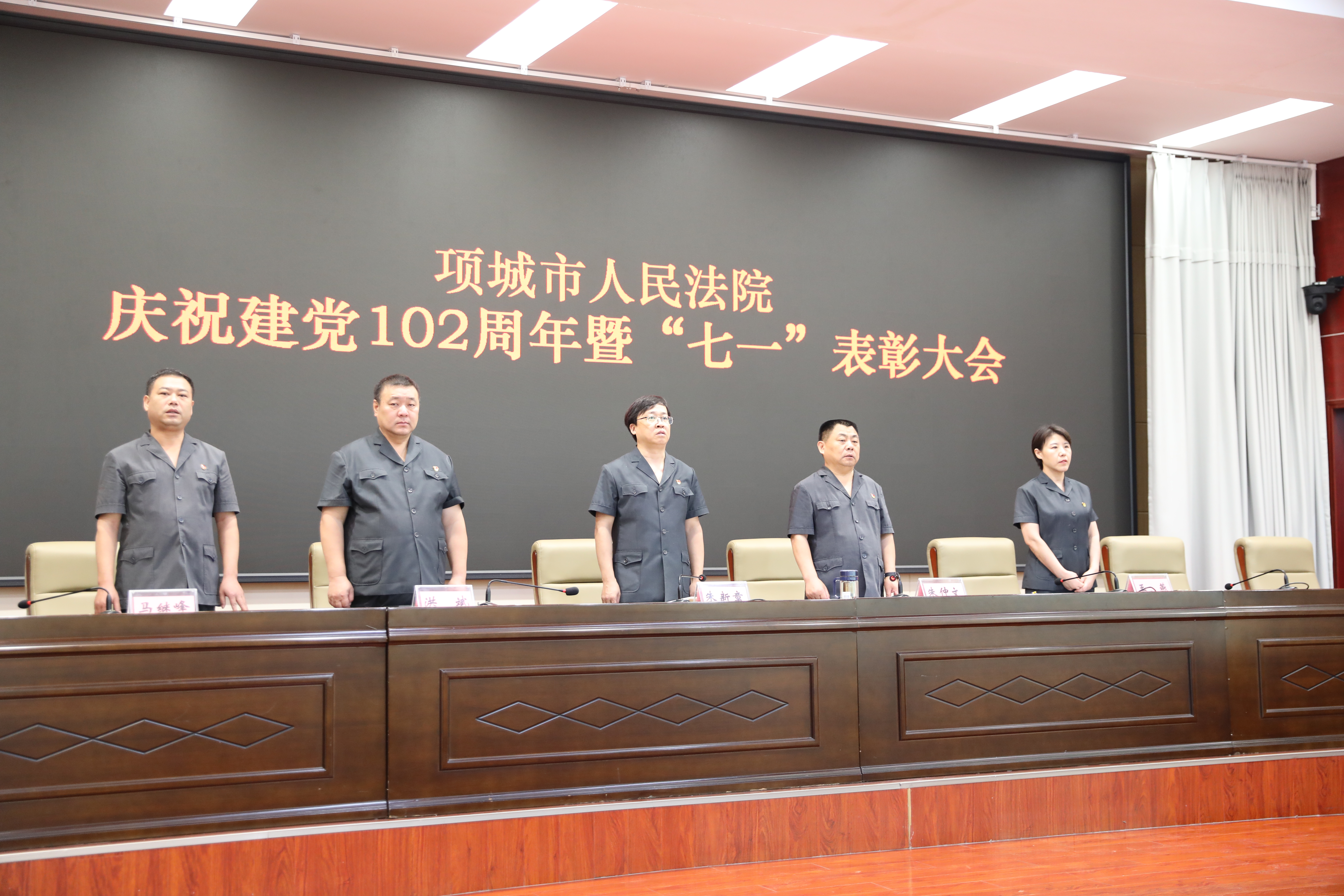 在中国共产党成立102周年之际,为激励全院党员干警担当作为、奋发向上,大力营造创先争优浓厚氛围,6月30日上午,项城法院召开庆祝建党102周年暨“七一”表彰大会。项城法院党组书记、院长朱新章,班子成员及全体党员干警参加会议。会议由党组副书记、副院长朱仲文主持。