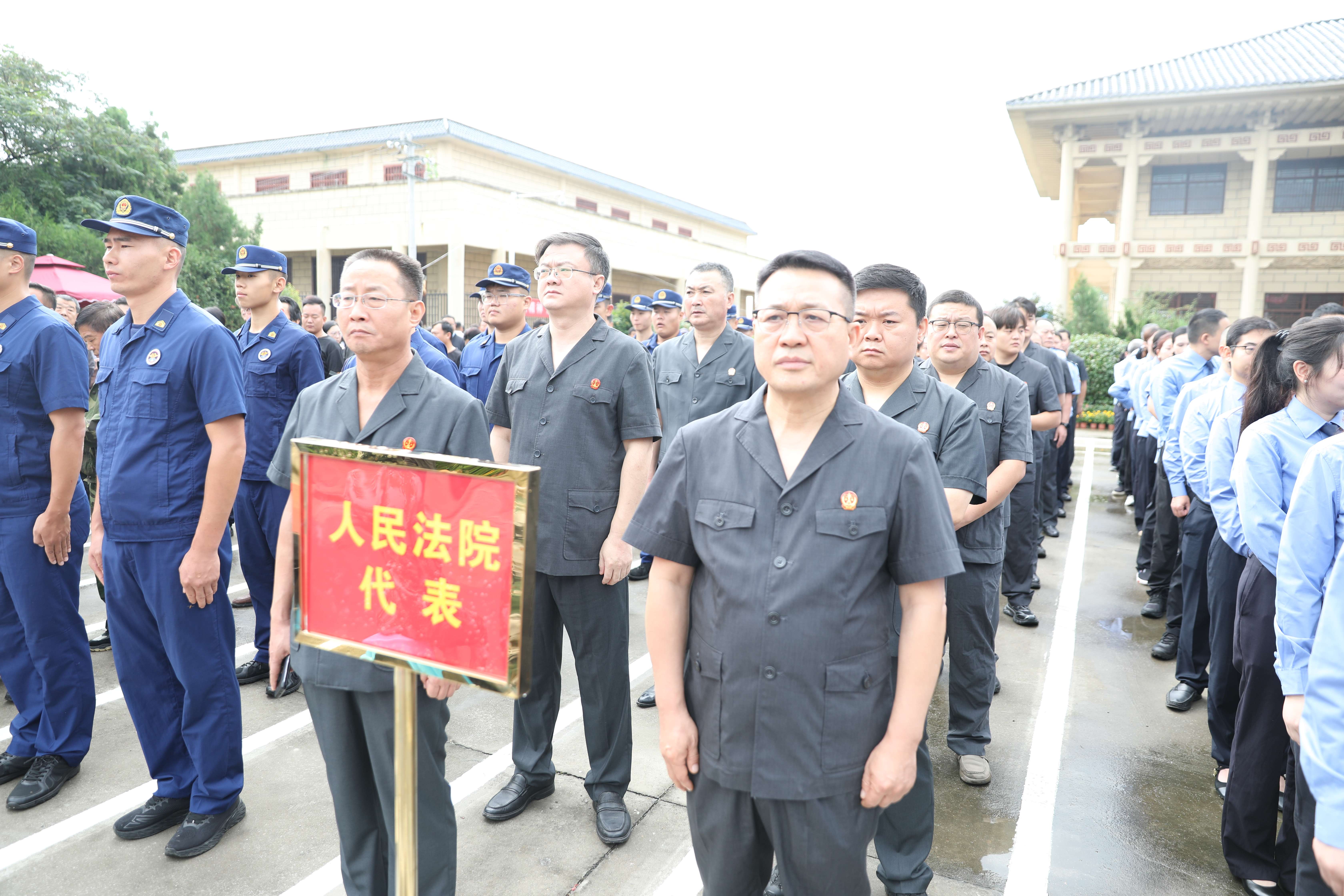 上午9时,仪式在雄壮的《义勇军进行曲》中拉开序幕。项城法院干警身着制服,胸前法徽在晨光下熠熠生辉,与各界代表一同肃立,齐声高唱中华人民共和国国歌。