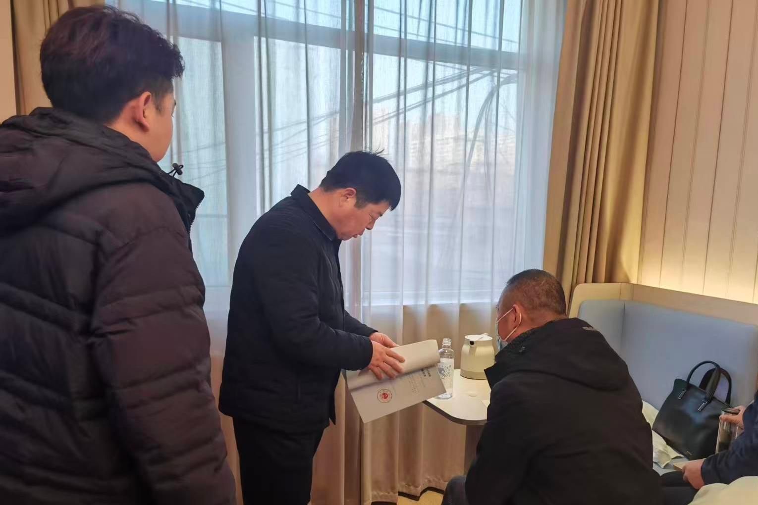 接到举报后,执行法官王方方没有丝毫耽搁,立刻备齐案件相关材料,与执行干警孙全超、闫高强、卢琳迅速集结,连夜驱车赶赴保定市。经过数小时的长途奔波,执行干警们于10日早上8点左右抵达目的地,成功将被执行人盛某某拘传。