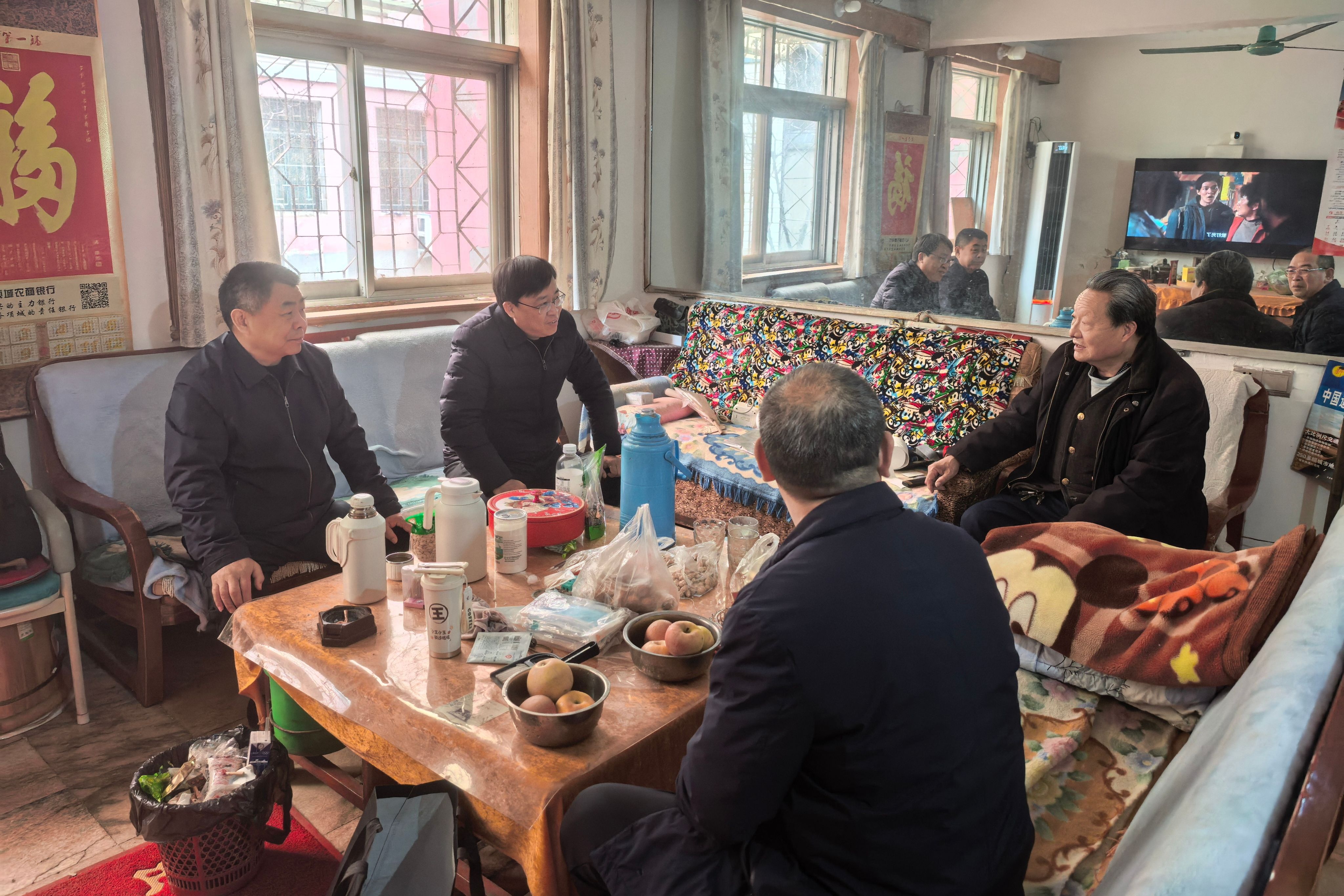 在老干部家中,朱新章院长与老干部促膝交谈、嘘寒问暖,详细询问日常起居、身体状况与实际困难,认真倾听老同志对法院工作的意见建议,感谢老干部为法院事业奠基拓荒、薪火相传所作出的重要贡献。