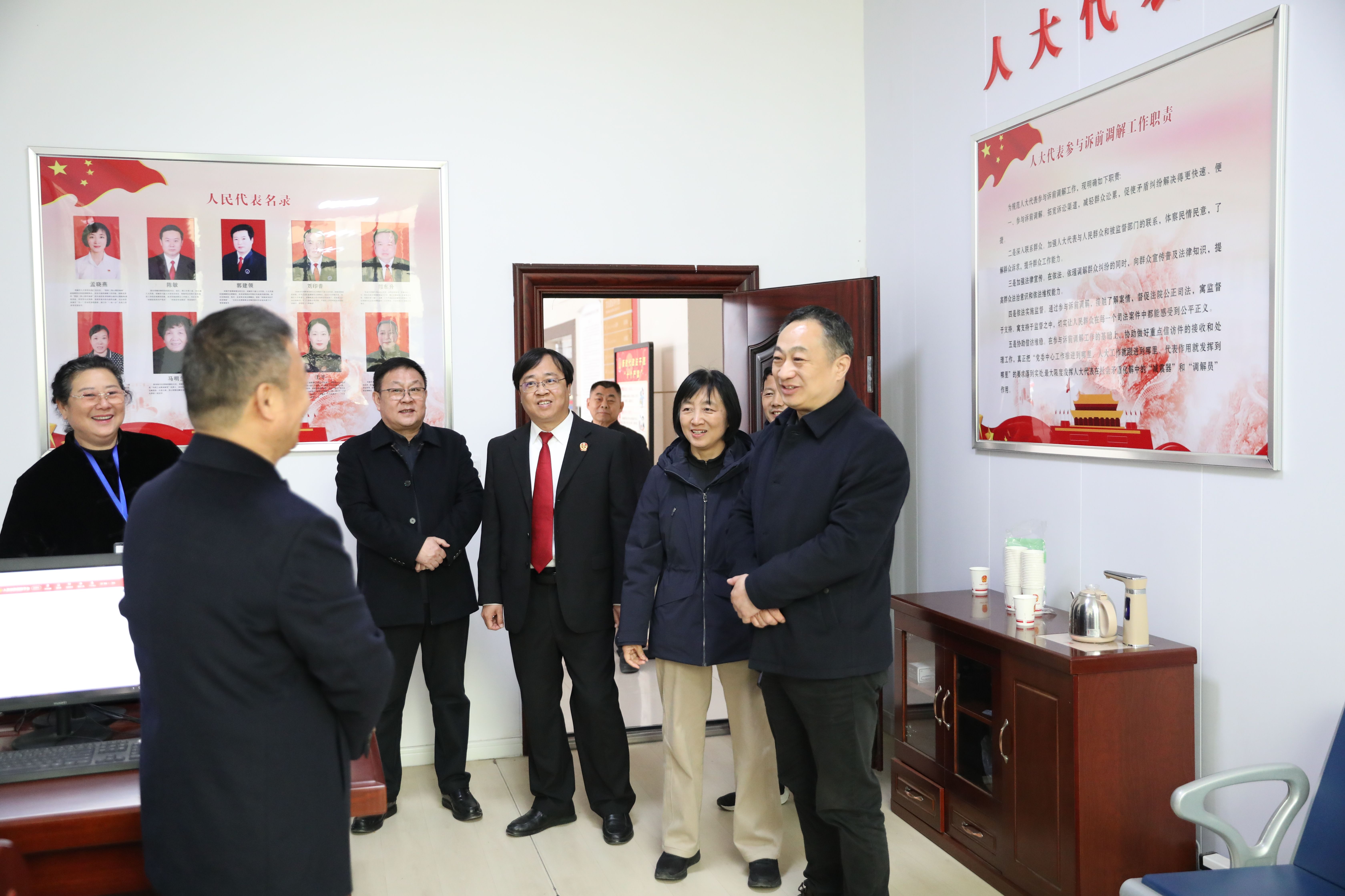 在人大代表驻院诉前调解室,李炜主任听取了项城法院立案庭庭长夏林关于人大代表驻院调解室功能、诉前调解案件范围、调解流程、工作机制建设及工作开展成效的介绍,并与人大代表调解员面对面亲切交流,详细了解矛盾纠纷化解情况。
