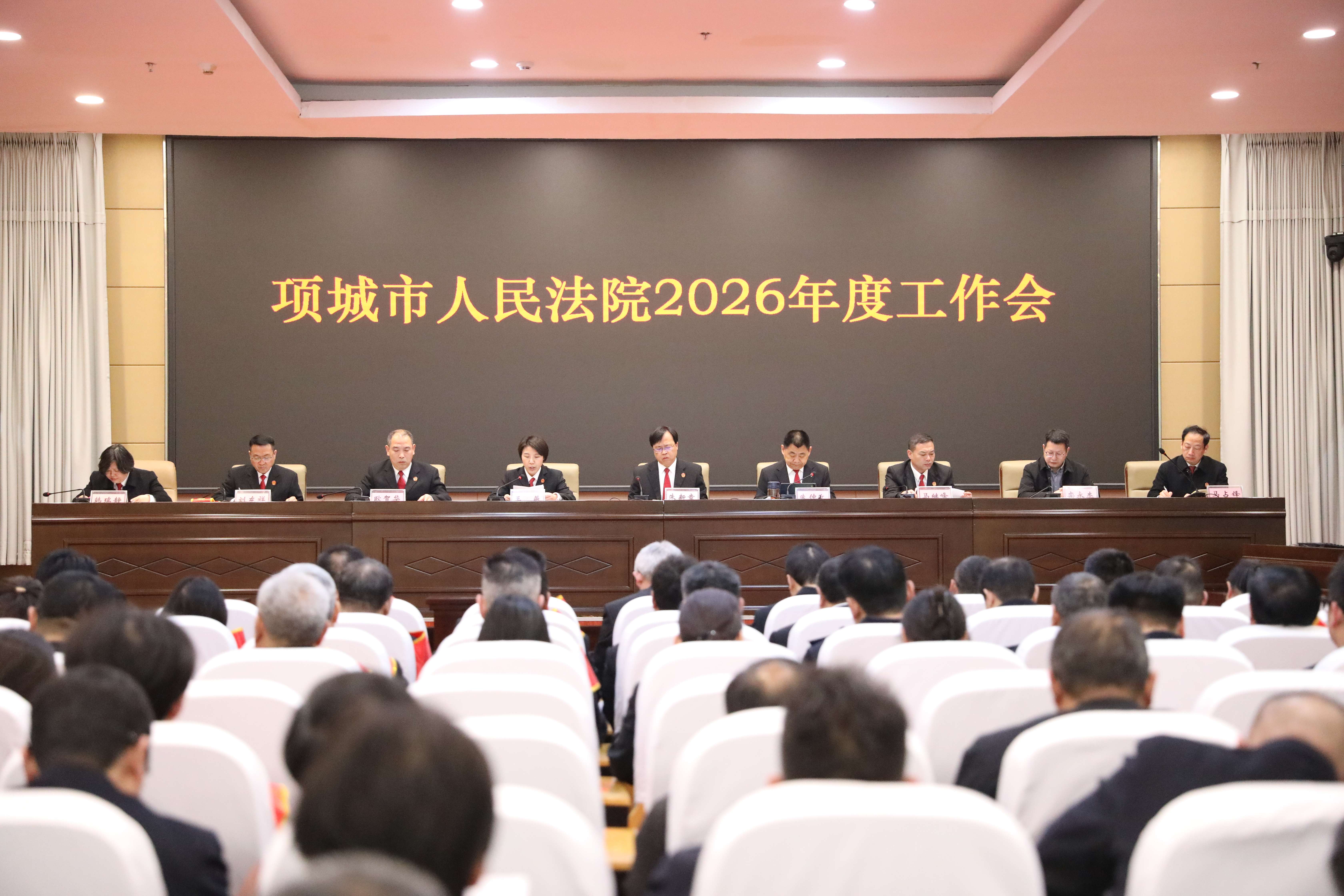 为认真落实上级重要会议精神,总结工作成绩,分析形势任务,部署2026年全院工作。3月16日上午,项城法院召开2026年度工作会议,院党组书记、院长朱新章,班子成员,市纪委监委派驻纪检监察组组长栾永杰及全体干警参加会议。会议由党组副书记、副院长朱仲文主持。