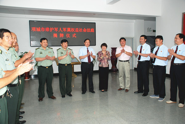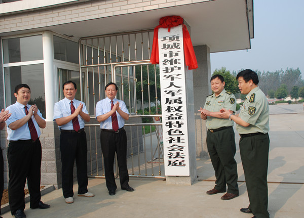 金秋送爽,丹桂飘香。9月19日,项城市维护军人军属权益社会法庭今日正式揭牌。项城市委常委、市武装部政委甘从英,市武装部部长翟胜山,市法院党组书记、院长赵振勇,党组副书记徐如明,副院长位红星、韩伟,院长助理陈东及社会法官等出席了揭牌仪式。
